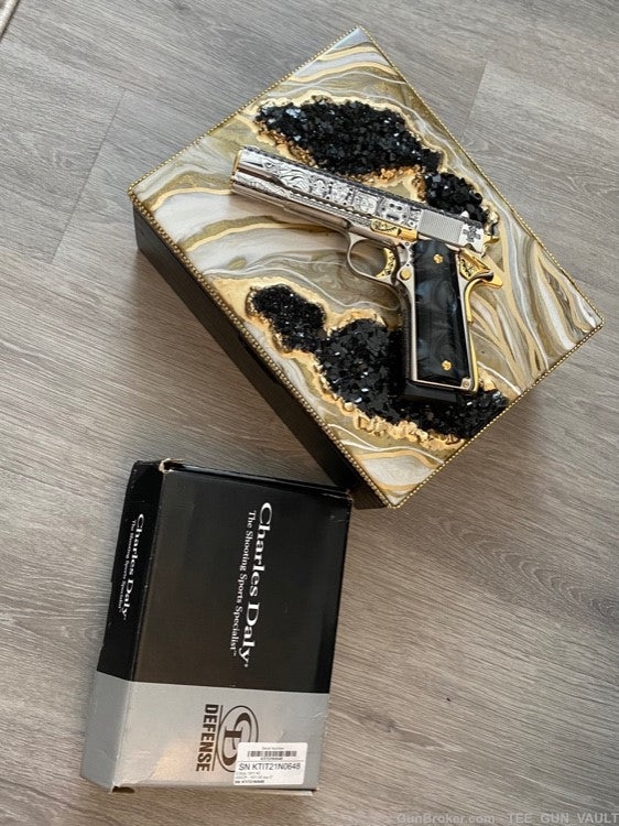 CHARLES DALY 1911 FULLY ENGRAVED AND 24K WHITE/YELLOW GOLD PLATED .45 ACP