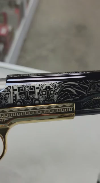 MIDNIGHT BLUE CHROME WITH AZTEC ETCHING ENGRAVING AND 24k GOLD PLATED.