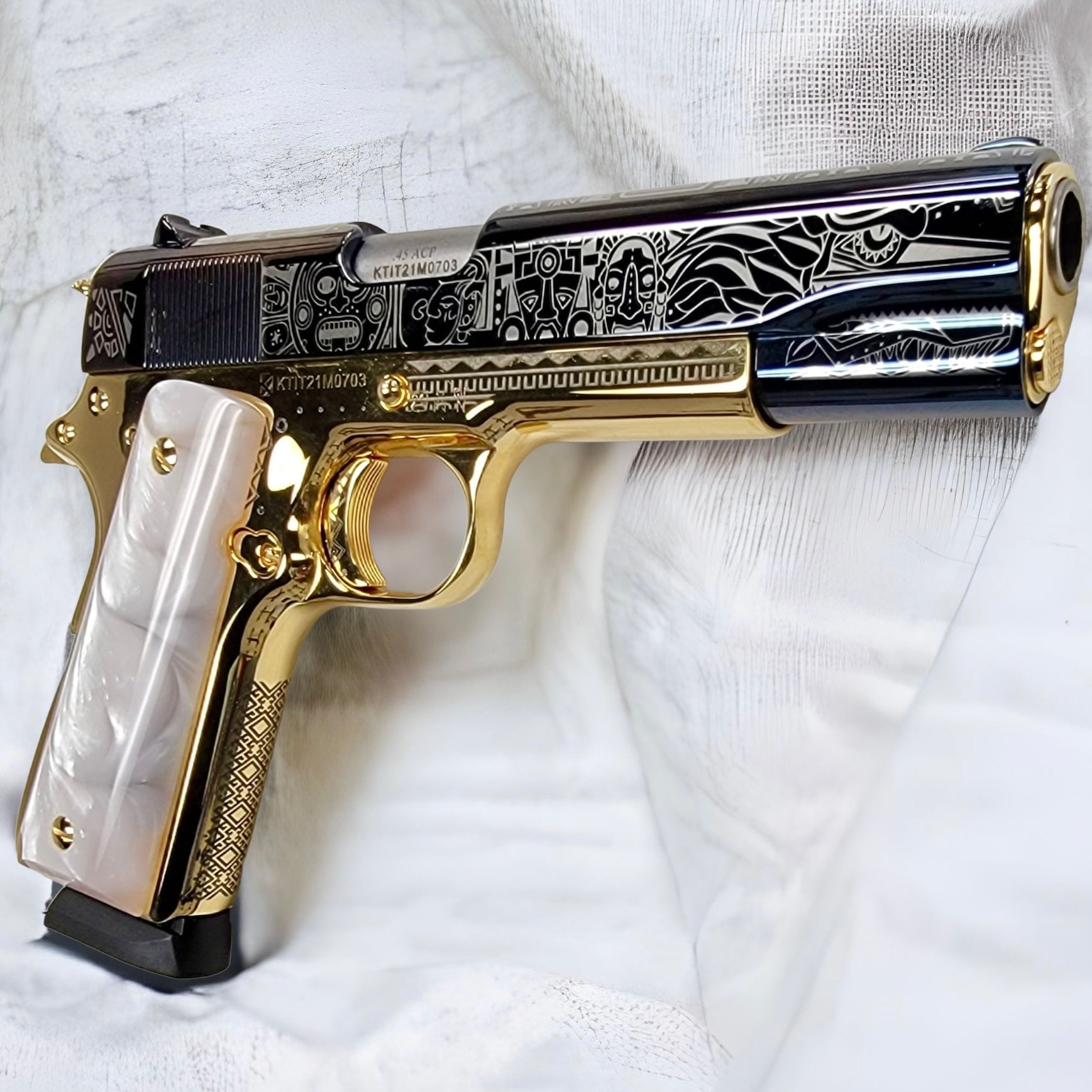 CHARLES DALY 1911 HIGH POLISHED, NIGHT BLUE CHROMED & 24K GOLD PLATED 45ACP