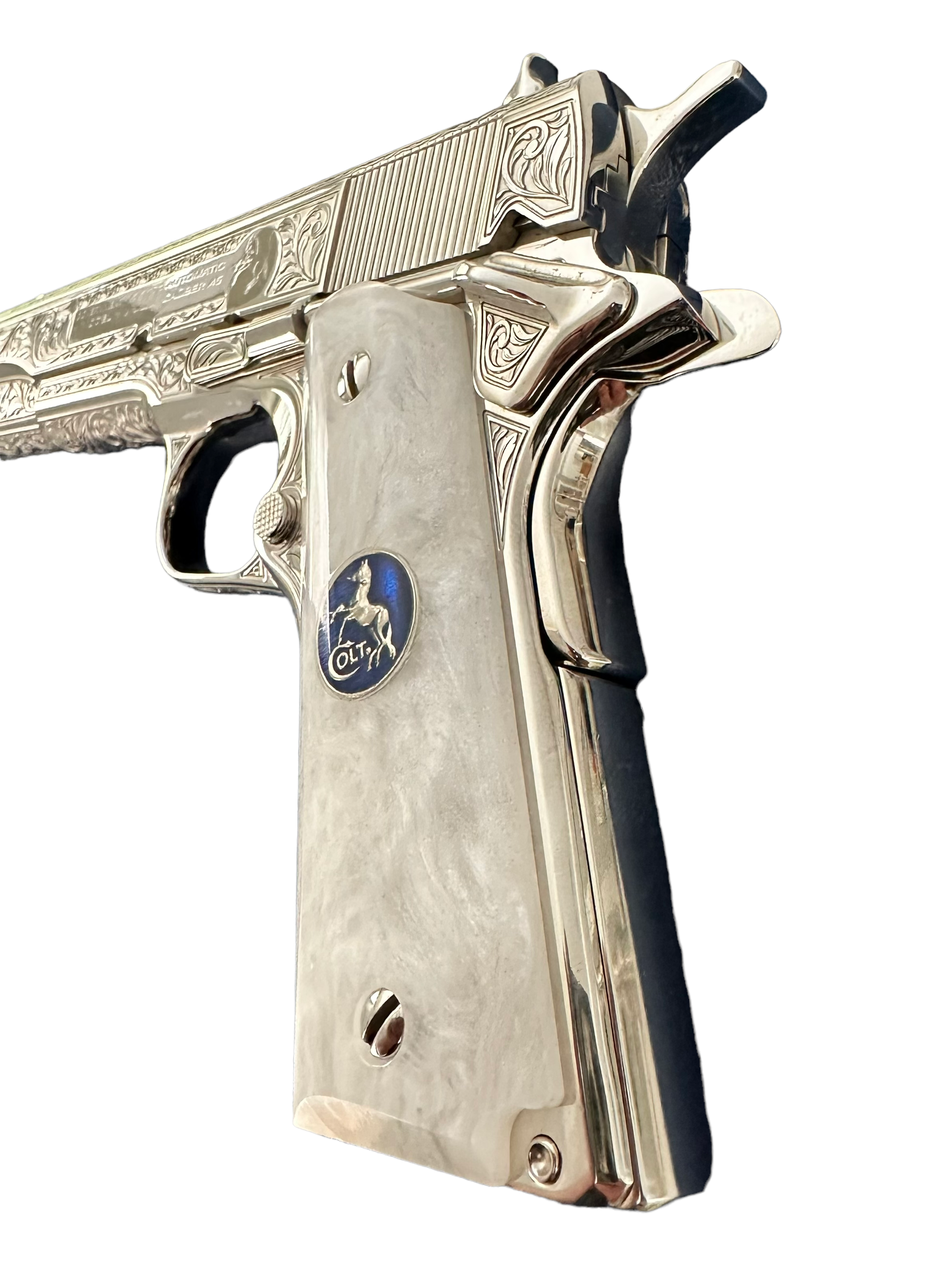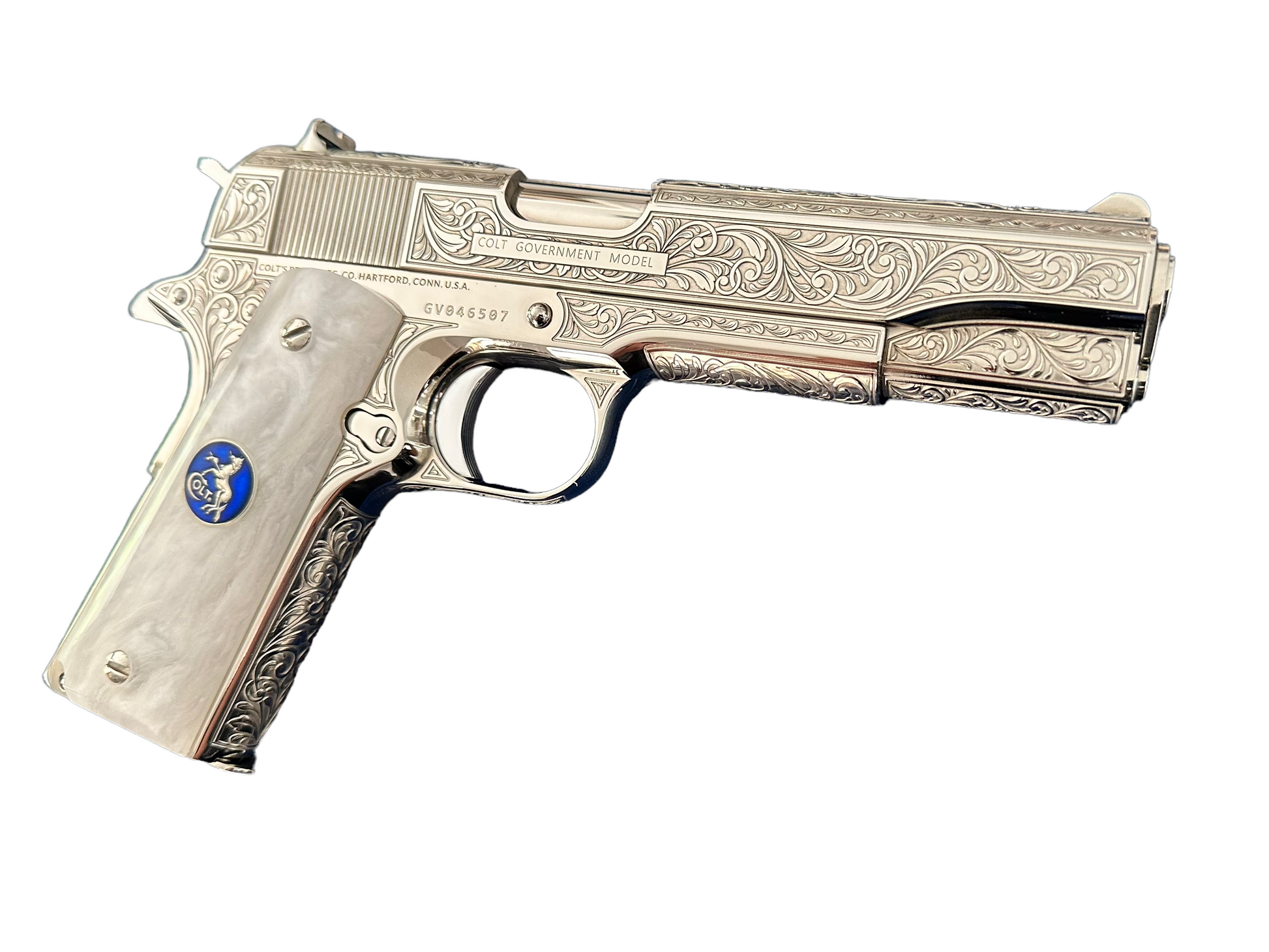COLT CUSTOM 1911 GOVERMENT FULLY ENGRAVED HIGH POLISHED & NICKLE PLATED