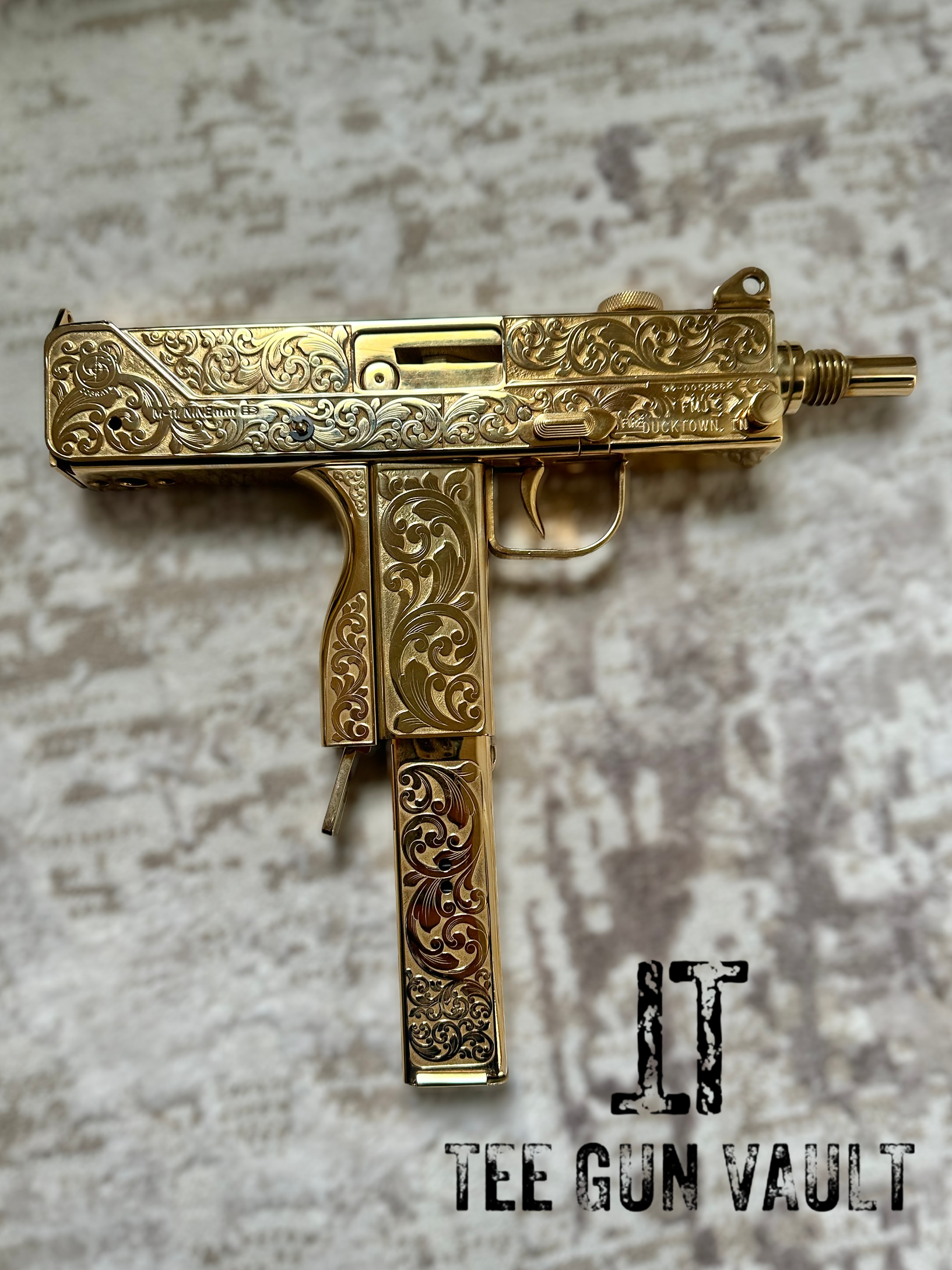 polished , fully engraved and 24k gold plated