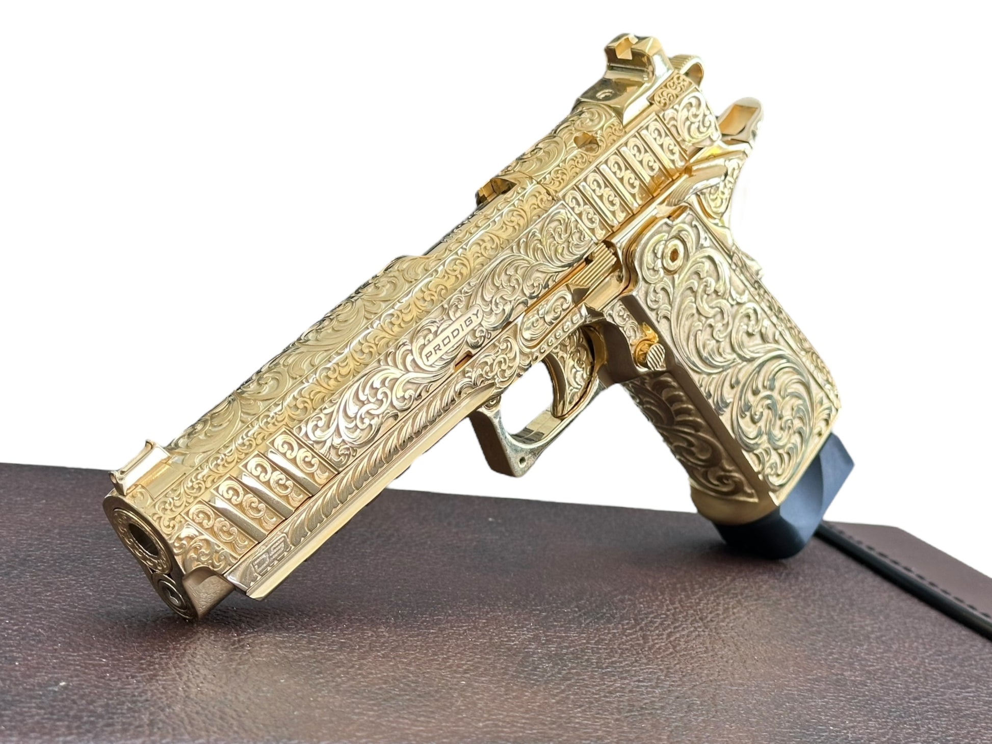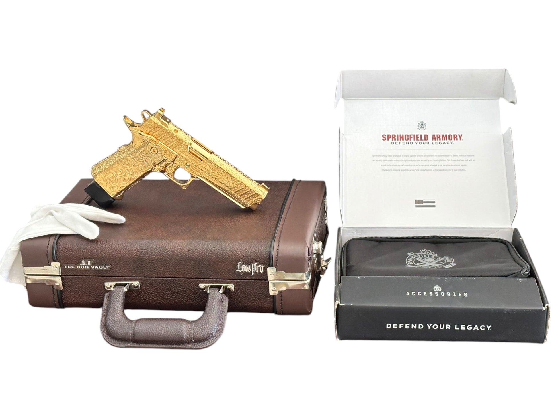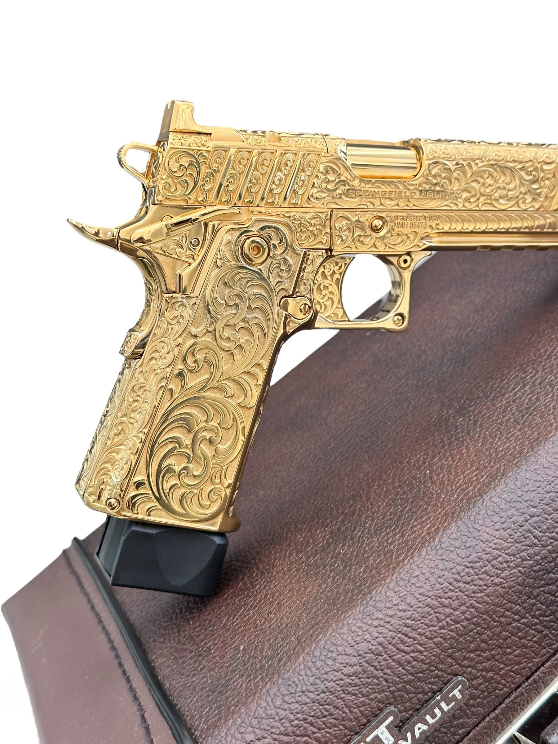 SPRINGFIELD ARMORY CUSTOM PRODIGY DOUBLE STACK 1 OF 1 FULLY ENGRAVED POLISHED AND 24K GOLD PLATED 9MM