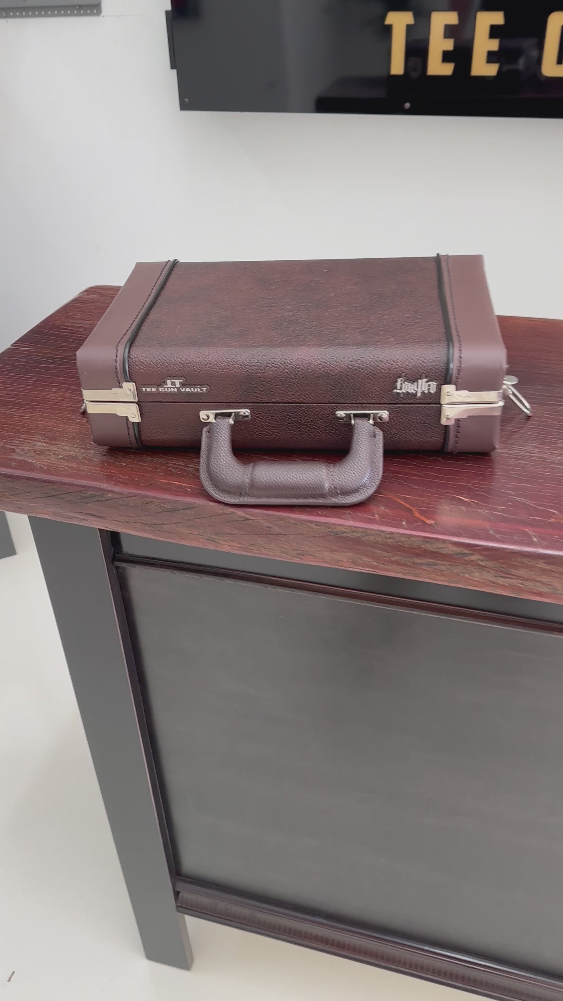 COMES WITH A BROWN LEATHER MAGNET BRIEFCASE.