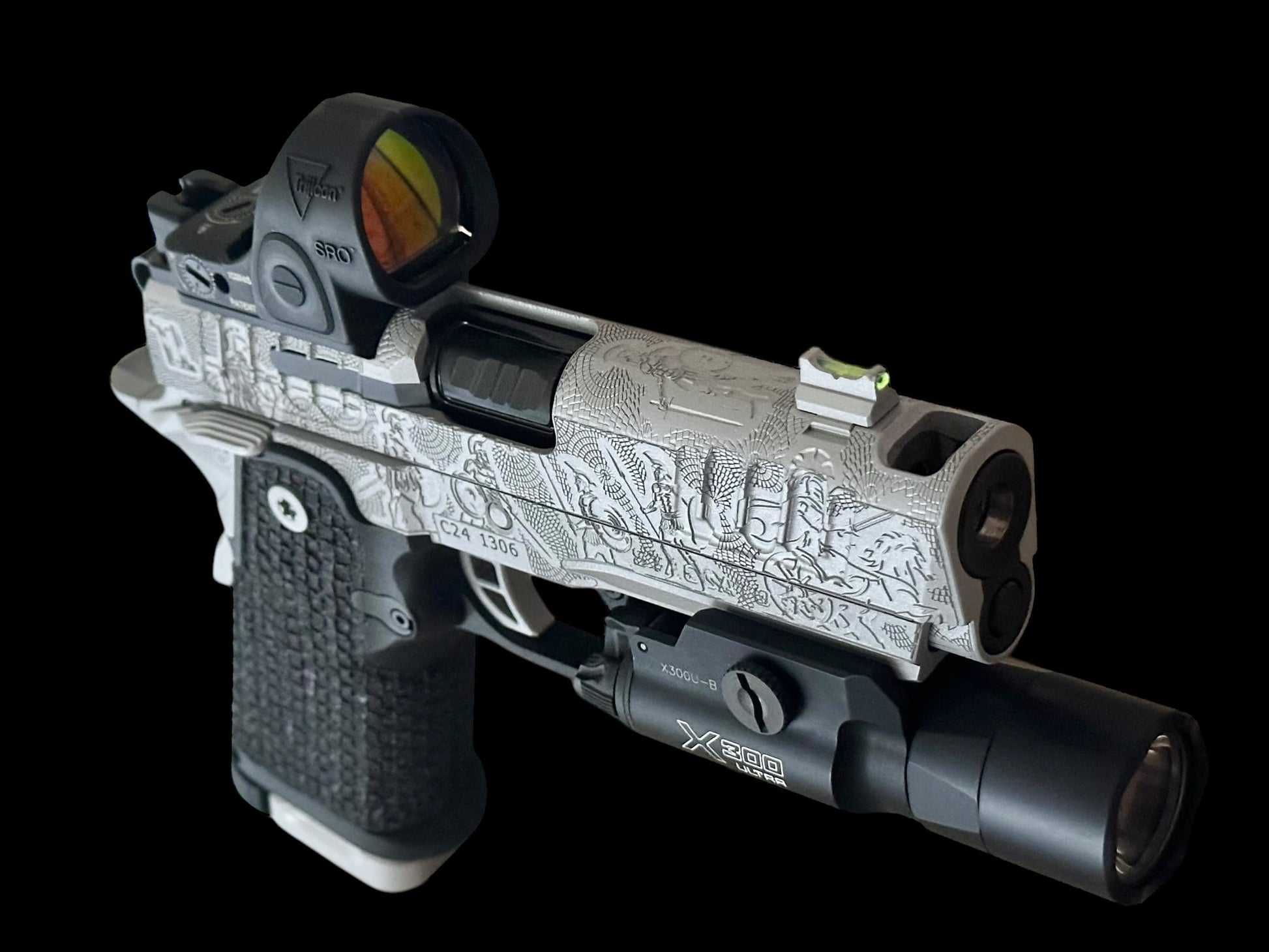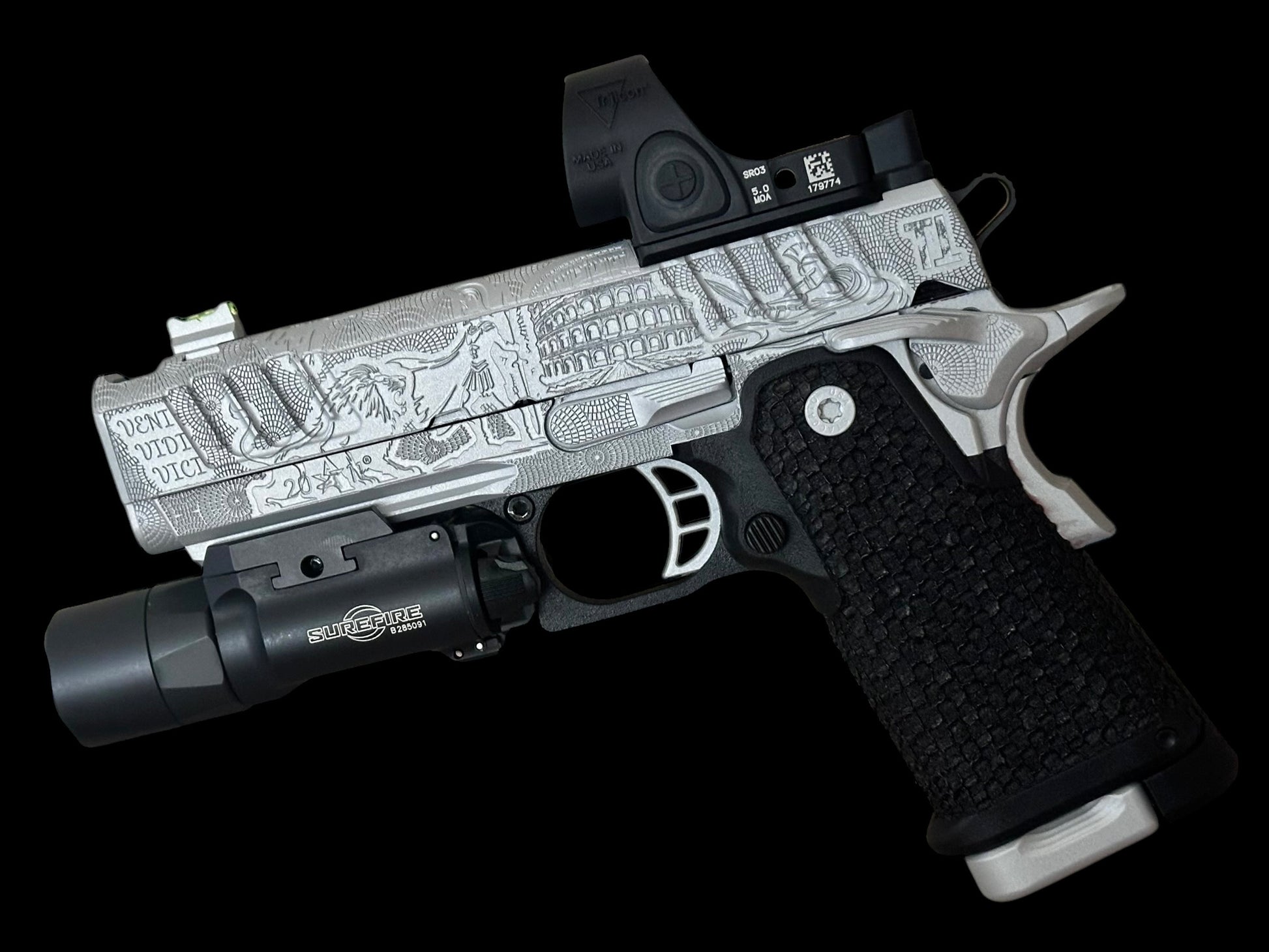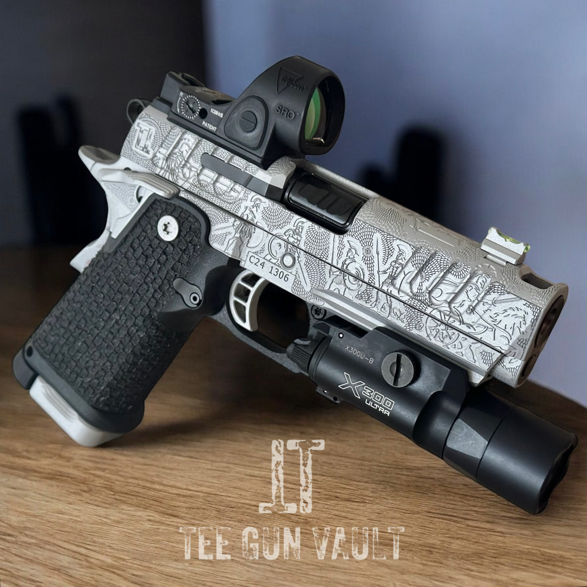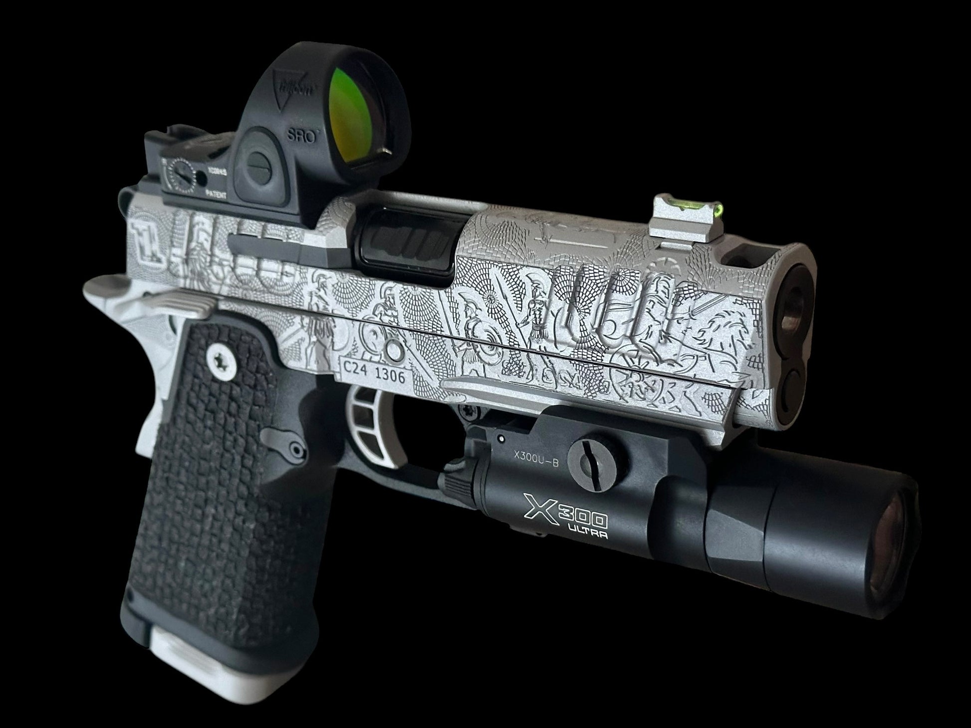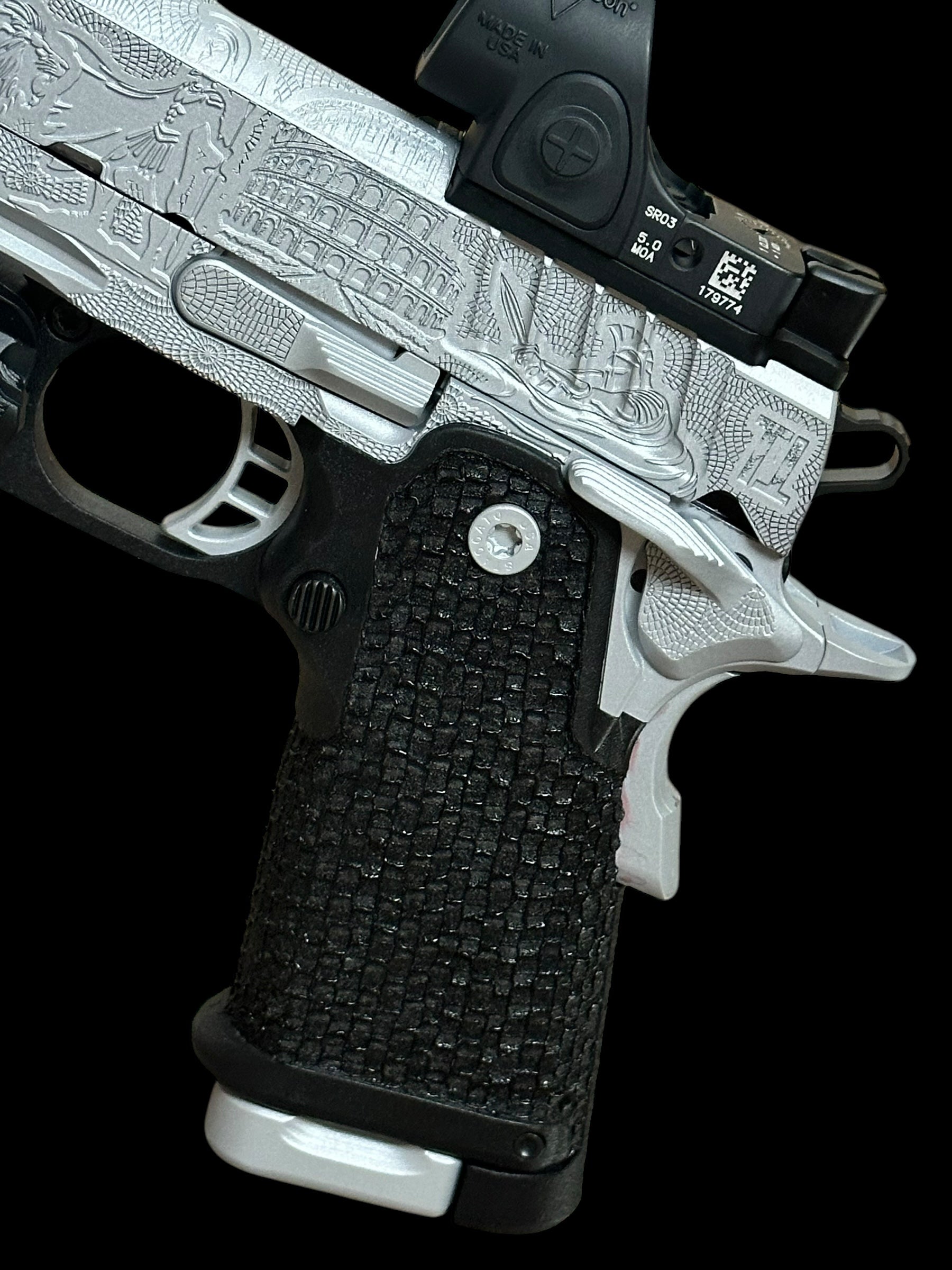 STACCATO CUSTOM C “SPARTACUS” PORTED ENGRAVED WITH SILVER FINISH SRO AND X300