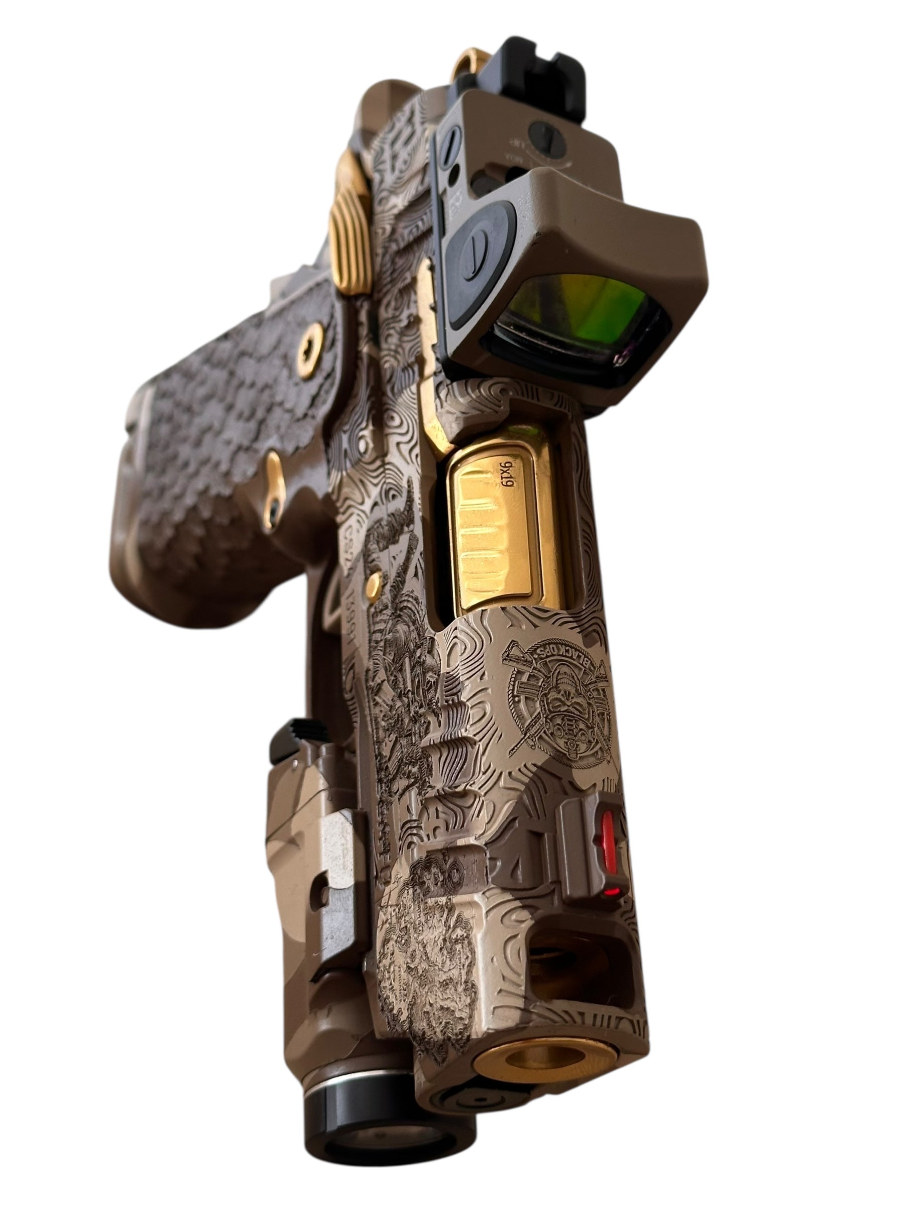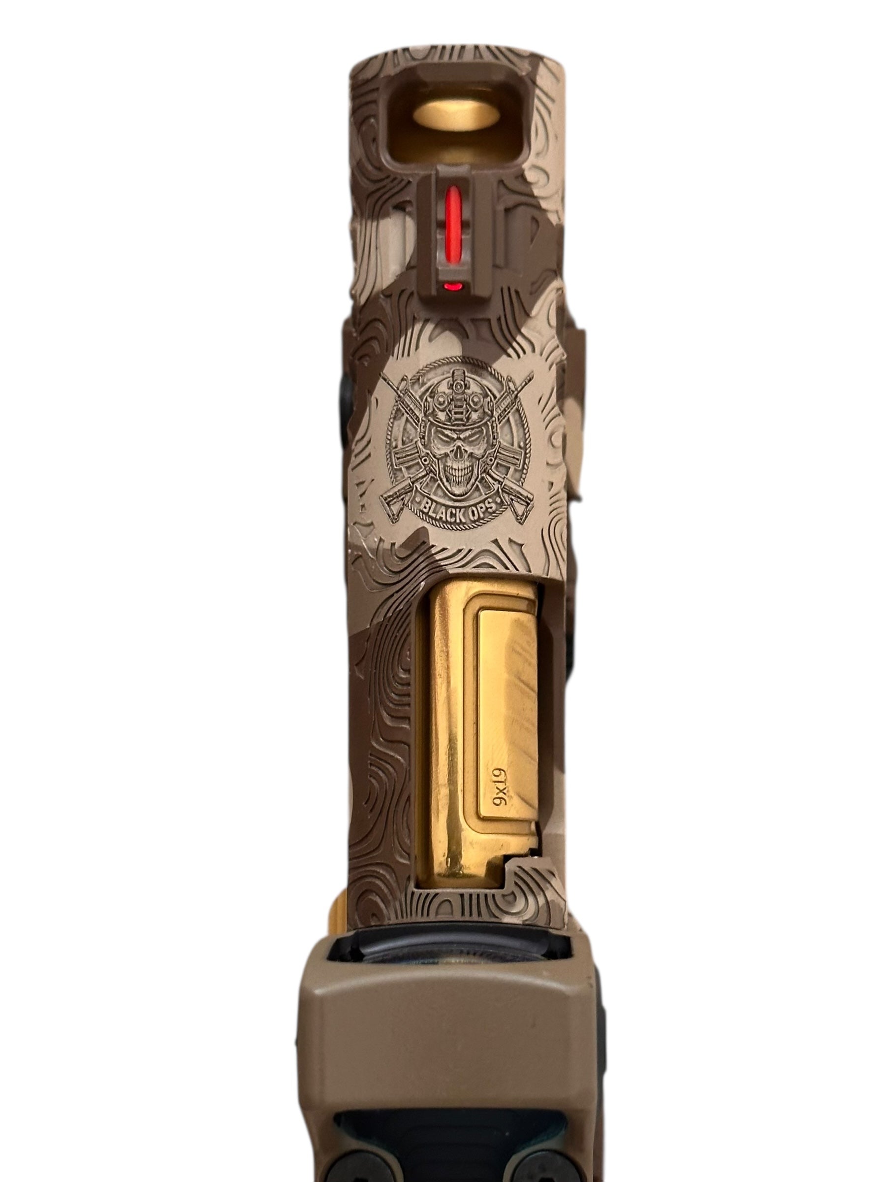 STACCATO CUSTOM CS “BLACK OPS” TIN BARREL 3.5” MULTI CAM CERAKOTE WITH TRIJICON RMR / TLR 7 SUB