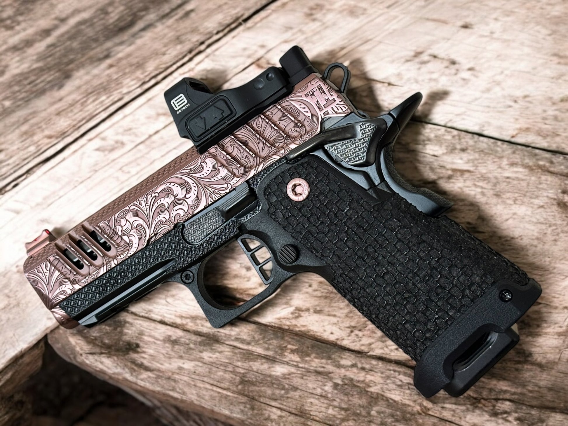 STACCATO CUSTOM CS X SERIES PORTED 3.5” ENGRAVED SCROLL DESIGN ROSE GOLD/ BLACK FINISH