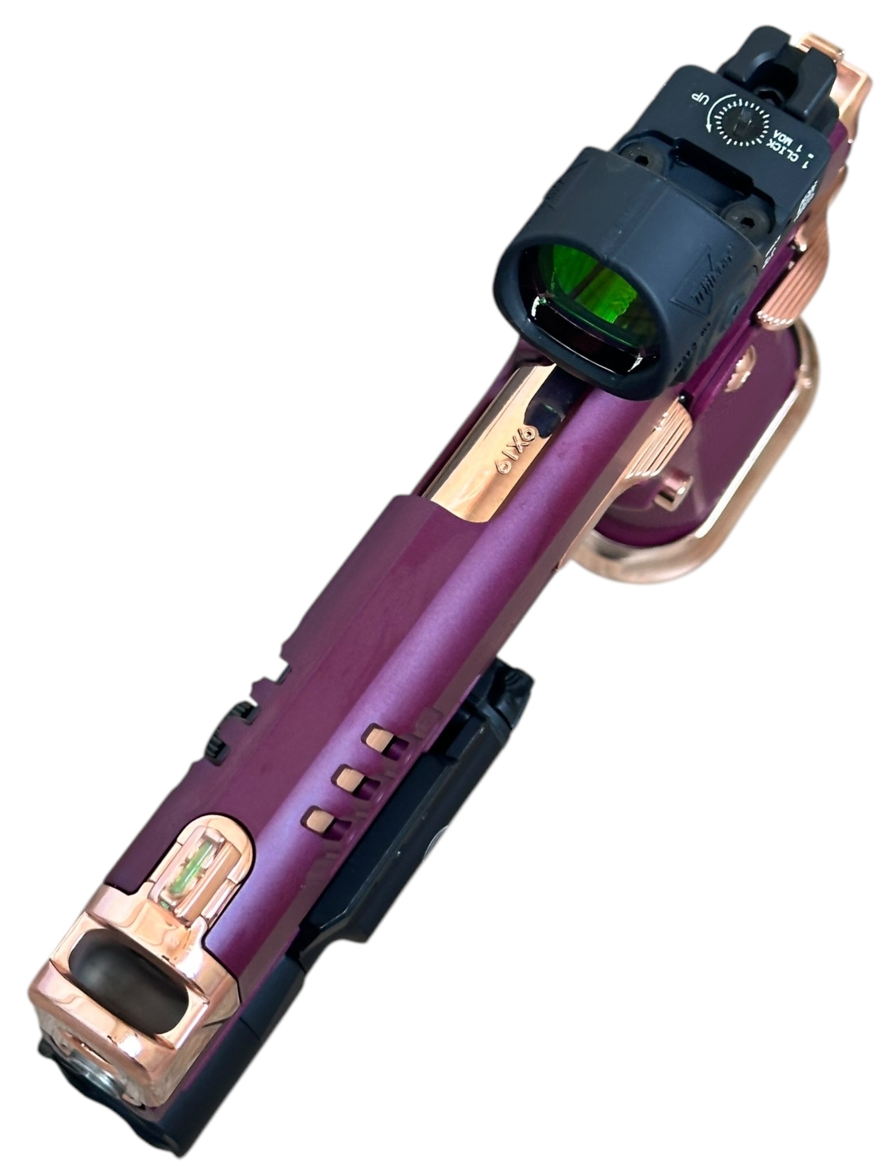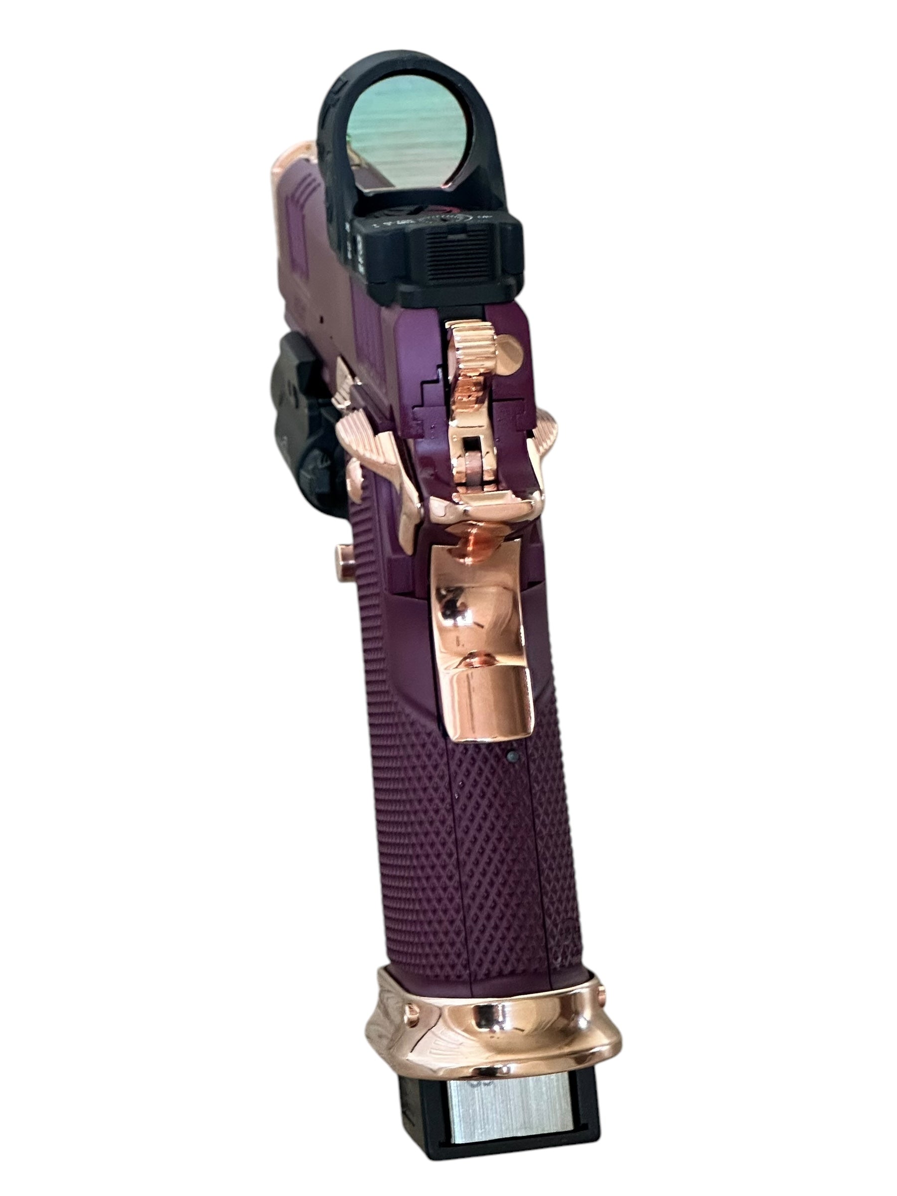 - FULL CERAKOTE BLACK CHERRY FINISH WITH 18k ROSE GOLD ACCENTS