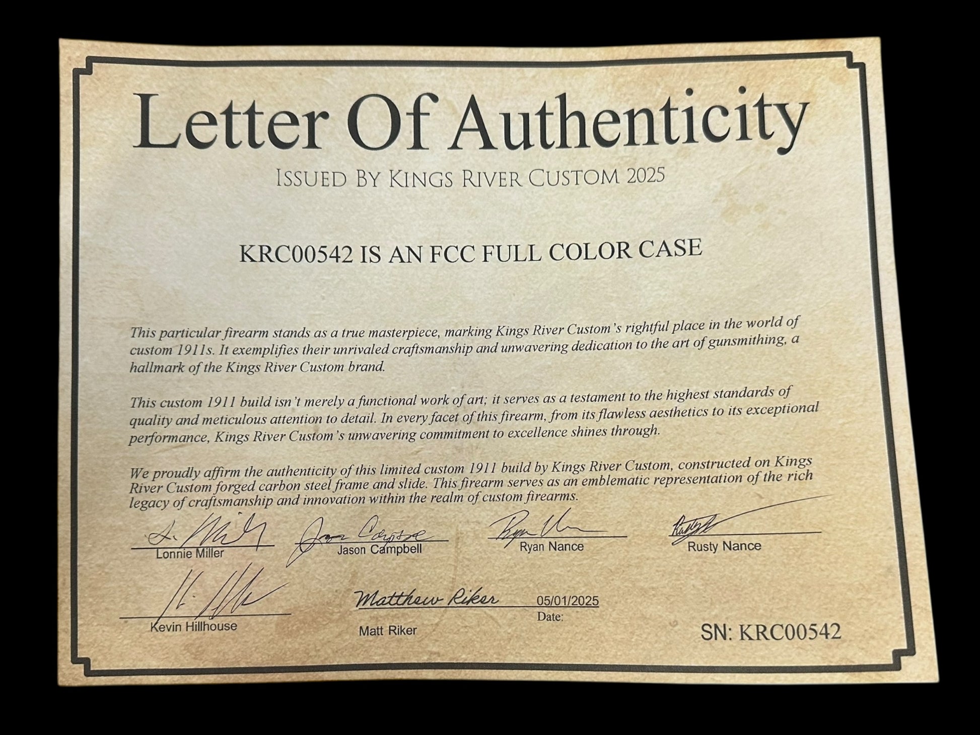 KINGS RIVER CUSTOM 1911 FCC LEVEL II FULL COLOR CASE HARDENED .45 ACP
