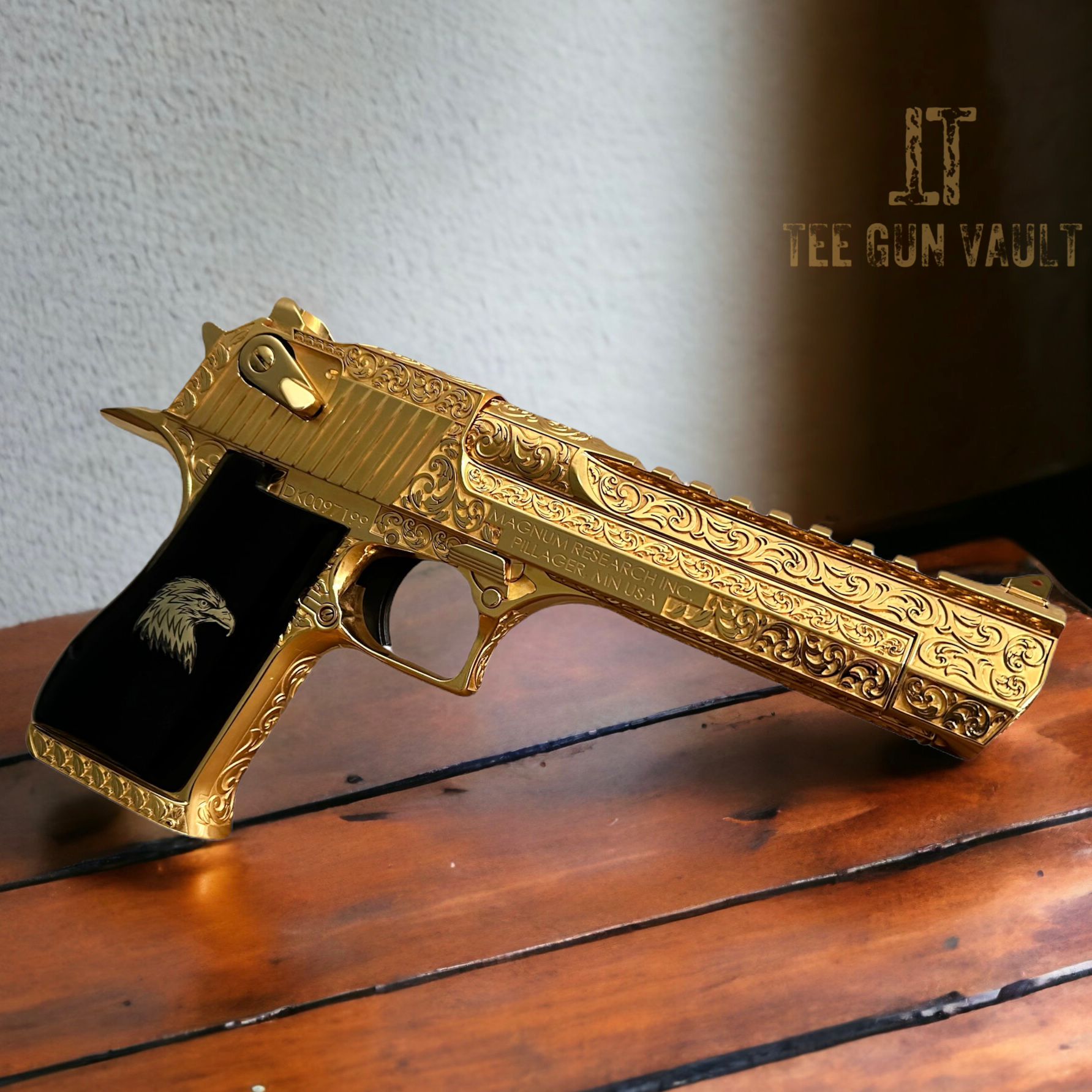 Custom made desert eagle fully engraved, high polished and 24k gold plated.
