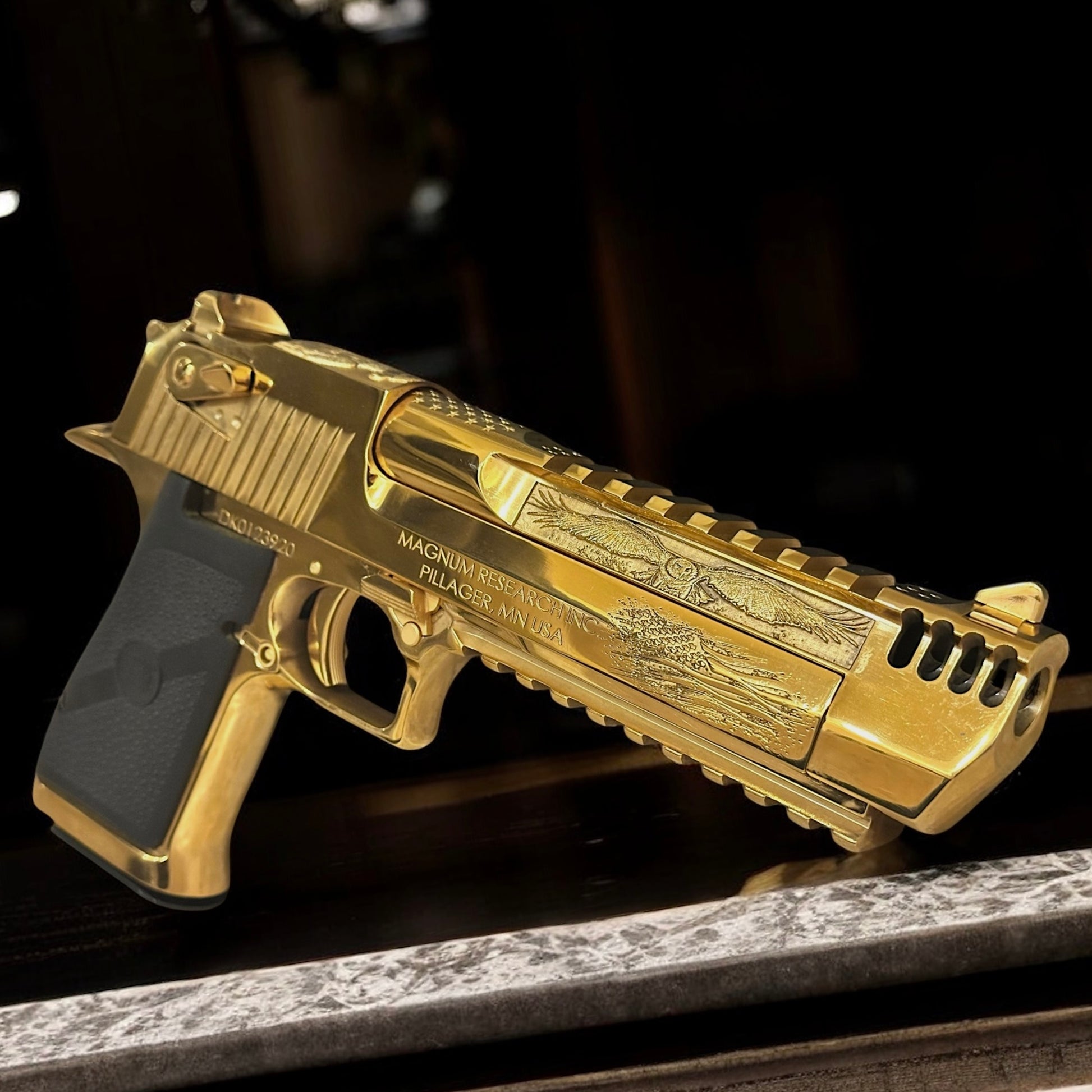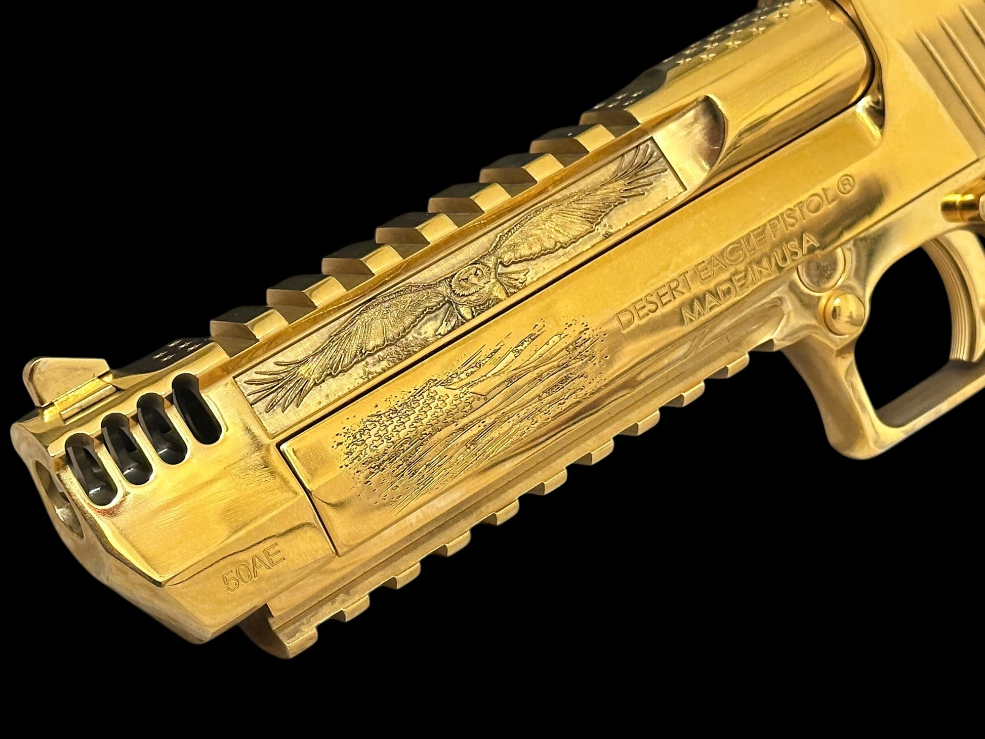 MAGNUM RESEARCH CUSTOM DESERT EAGLE POLISHED 24K GOLD PLATED FINISH 50AE