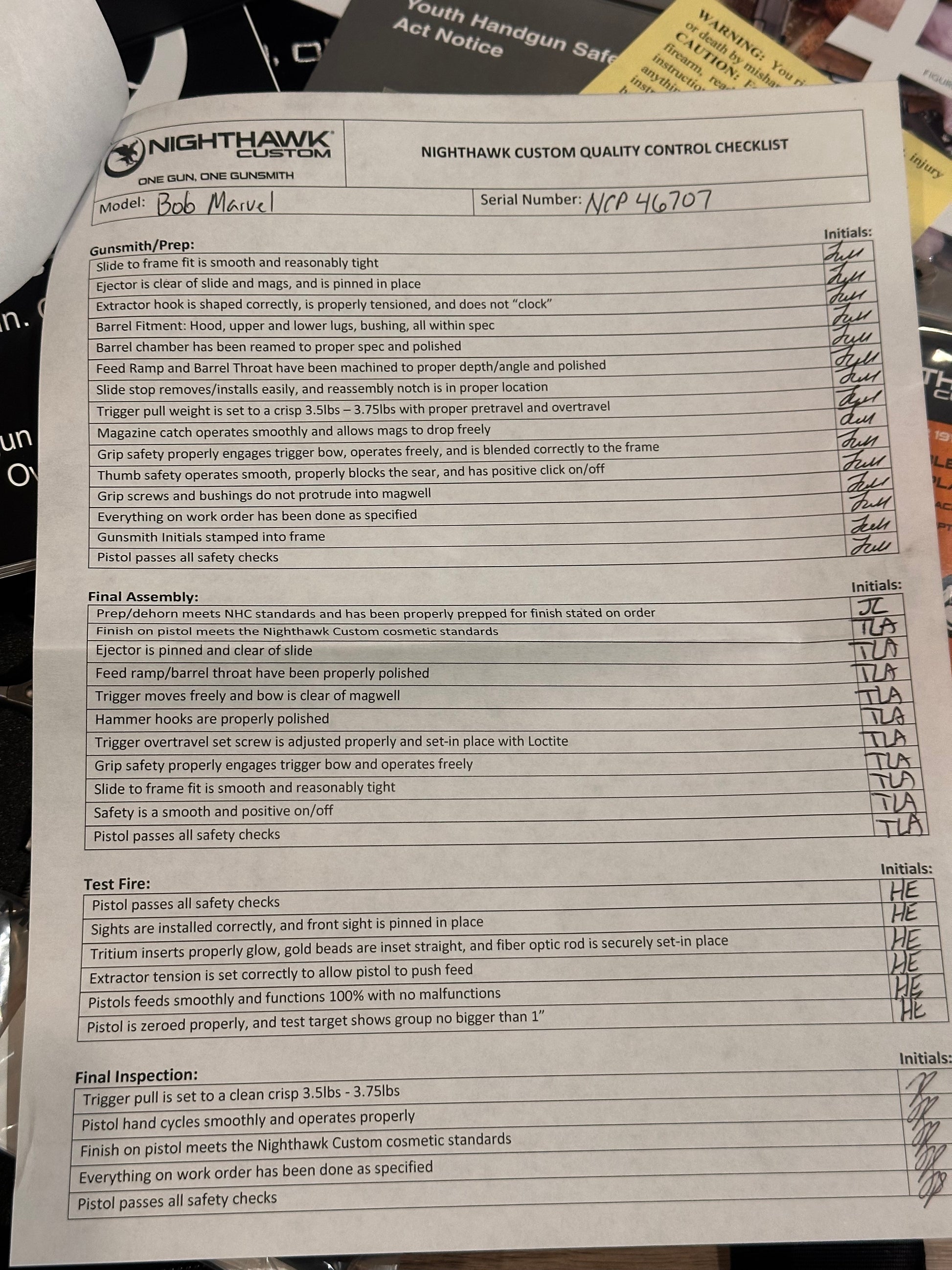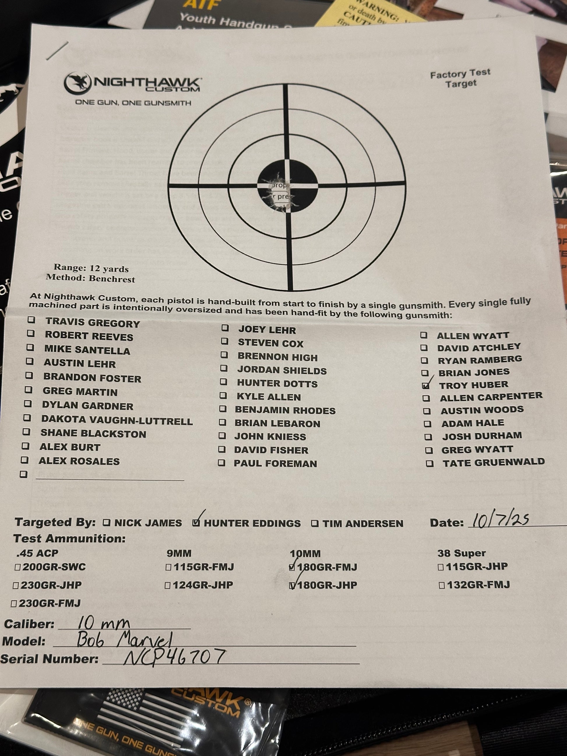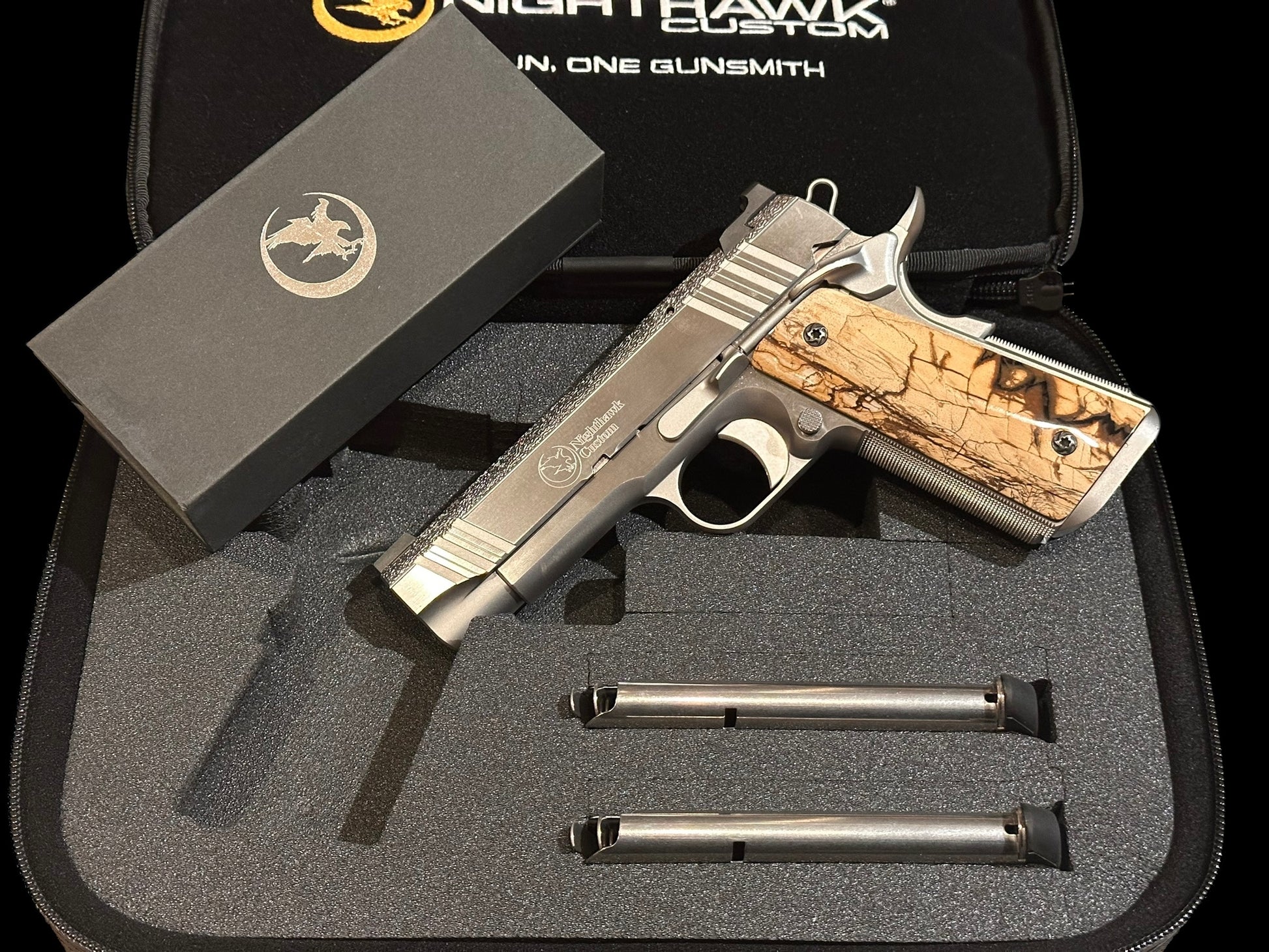 NIGHTHAWK CUSTOM BOB MARVEL 10MM MAMMOTH IVORY GRIPS AND MATCHING KNIFE