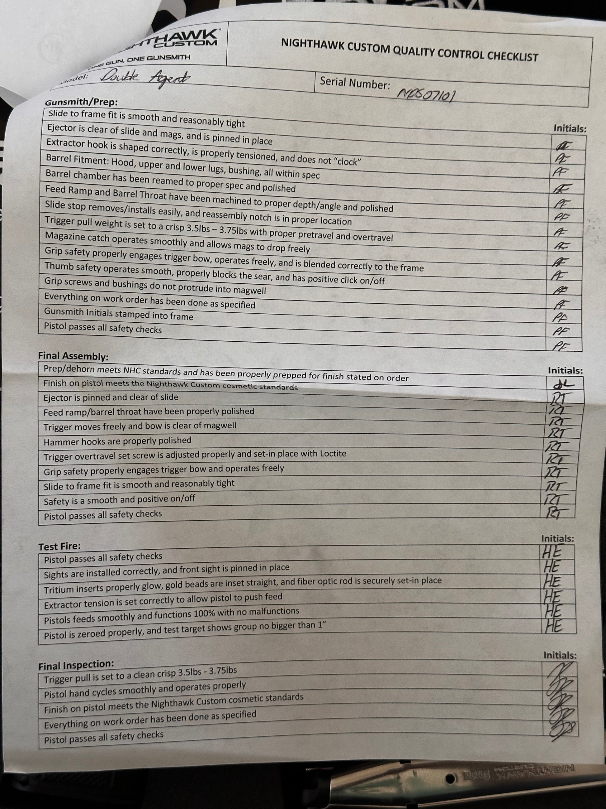 The Double Agent, 9MM, Double Stack Frame, 4.25" Commander Slide, Unique Diamond Checkered Slide Cuts & Aluminum Grip, Bull Nose Angle Cut Frame, Octagon Barrel, Custom Barrel Hood Facetted Flats, 16 Round Capacity, Recon Rail, Bull Barrel with Angle Cut, Everlast Recoil System, Ambi Hammer and Grip Safety, Aluminum Grip Safety, Black Nitride and Anodized Grip, Full Length Guide Rod, Tritium Front and Heinie Ledge Rear Sight, Black PVC Case