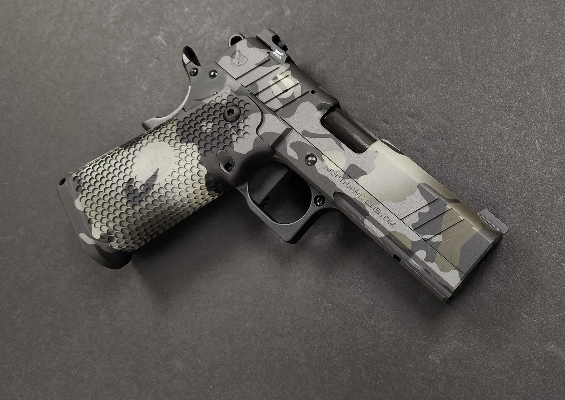 NIGHTHAWK CUSTOM TRS COMMANDER CAMO OPTIC READY WITH ACRO P2 PLATE 9MM