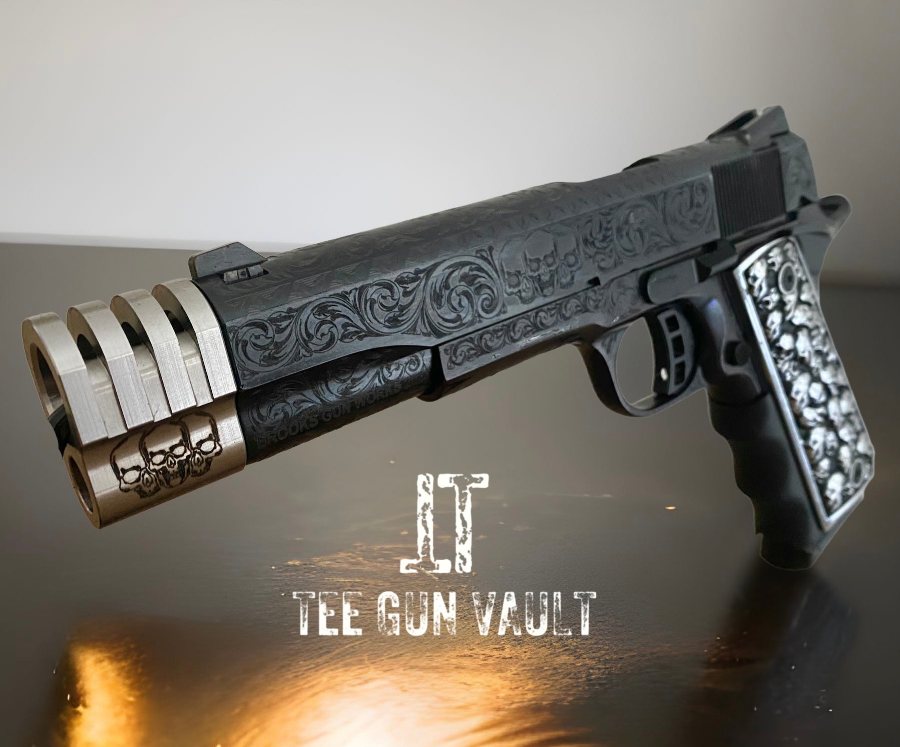 BRAND NEW CUSTOM ROCK ISLAND 1911 ENGRAVED AND DEEP BLUED SHINY FINISH. WITH COMPENSATOR