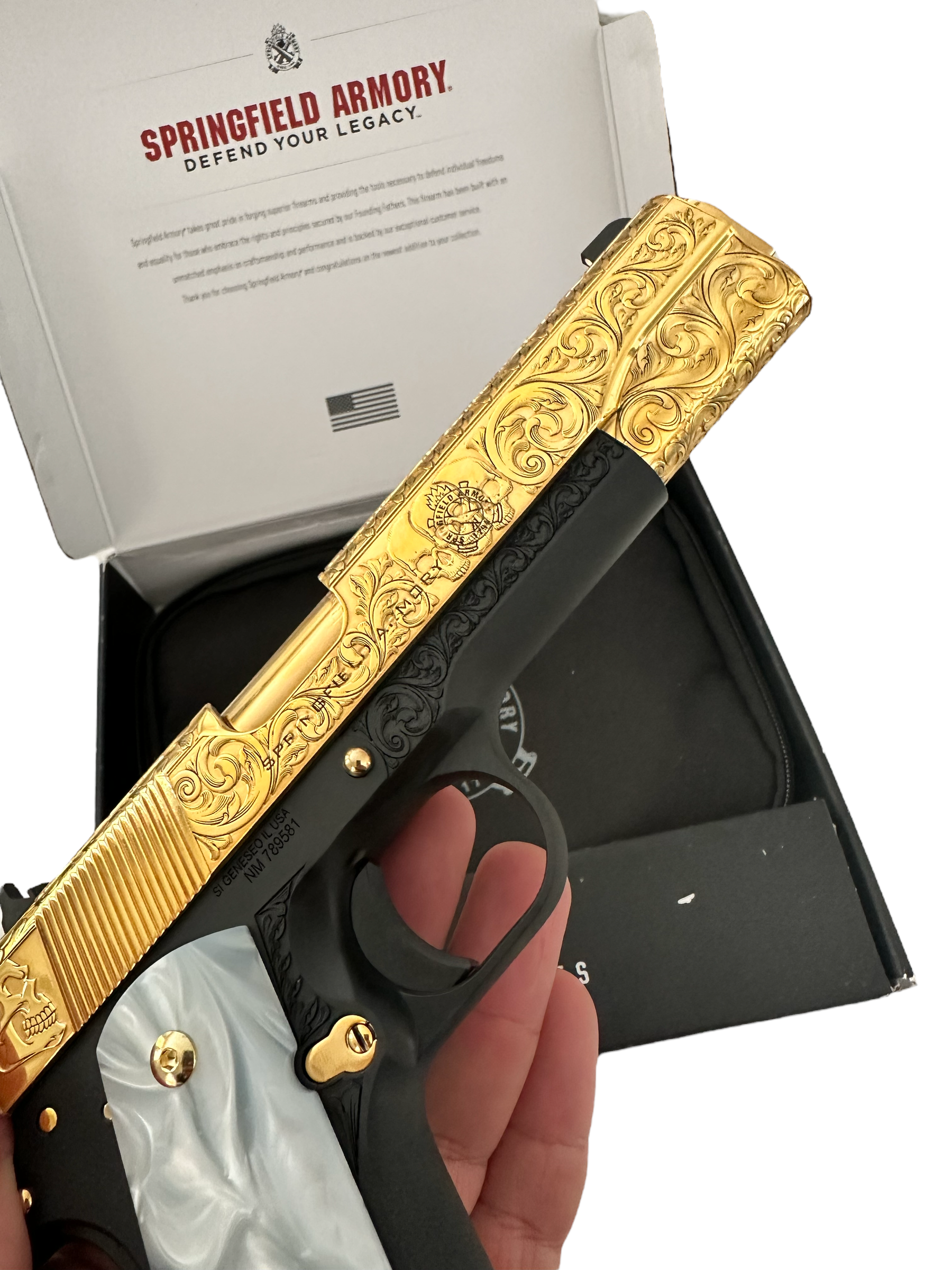 SPRINGFIELD ARMORY 1911 MIL SPEC 24k GOLD PLATED AND FULLY ENGRAVED 45ACP