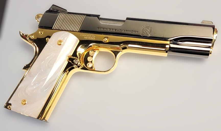 SPRINGFIELD ARMORY GARRISON HIGH POLISHED AND 24k GOLD PLATED/BLACK CHROME