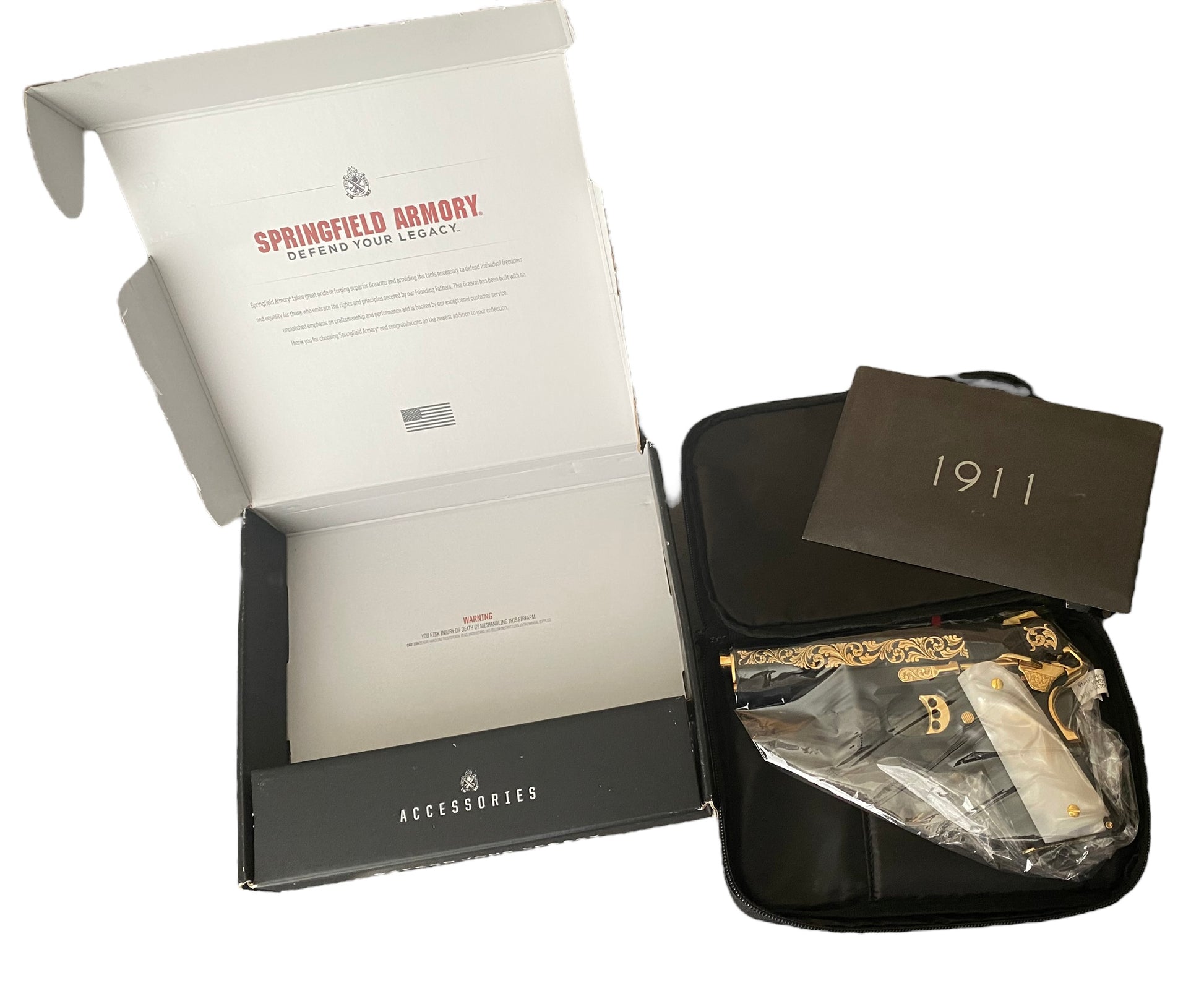 SPRINGFIELD GARRISON 1911 ENGRAVED WITH 24K GOLD ACCENTS 9MM