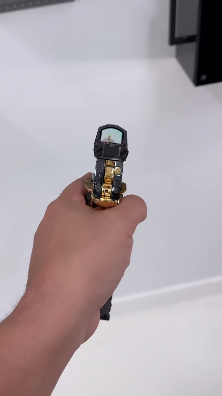 4.25” PRODIGY 2011 9MM HIGH POLISHED WITH ROYAL BLUE FINISH AND 24K GOLD ACCENTS WITH A BEAUTIFUL ETHEREUM ENGRAVED COIN ON TOP OF THE BARREL FOR ALL THE CRYPTO COLLECTORS.