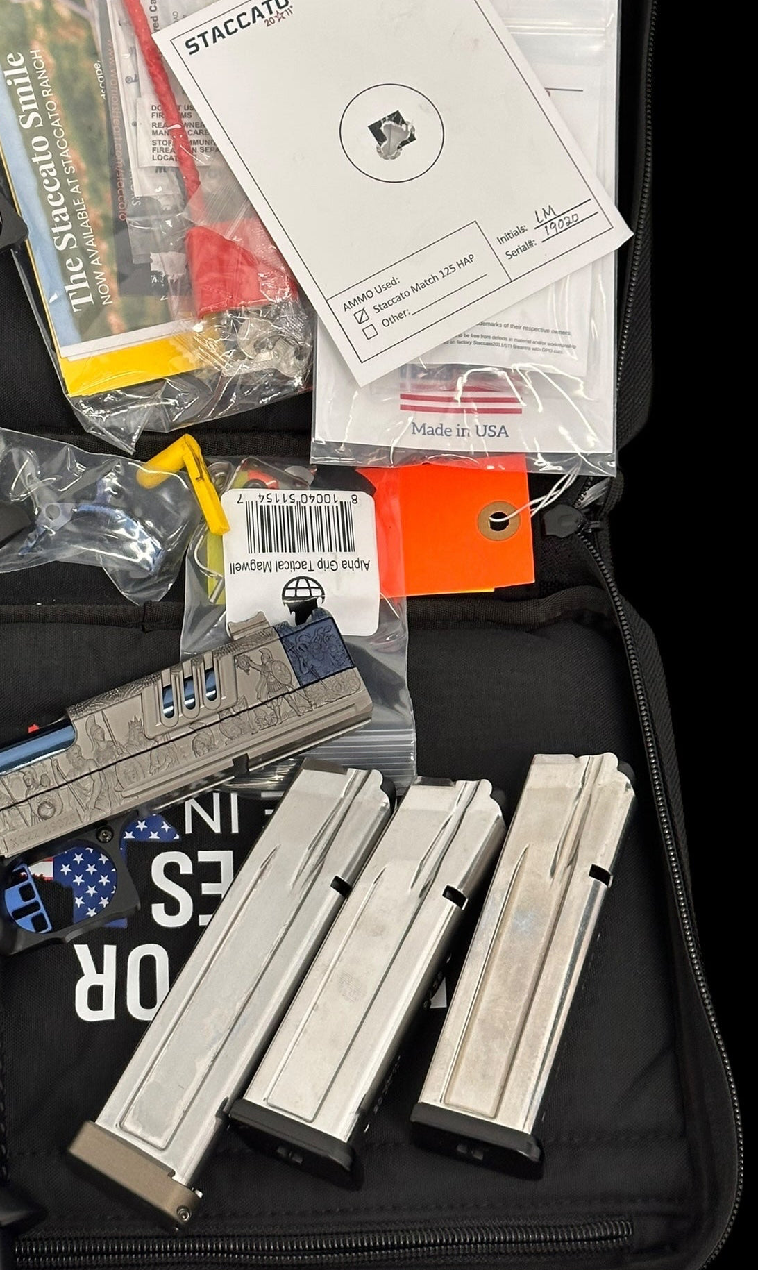 STACCATO CUSTOM XC “AEGIS” GREY/POLISHED BLUE PVD FINISH ATLAS GRIPS RED DIRT TRIGGER ACRO P2 & X300