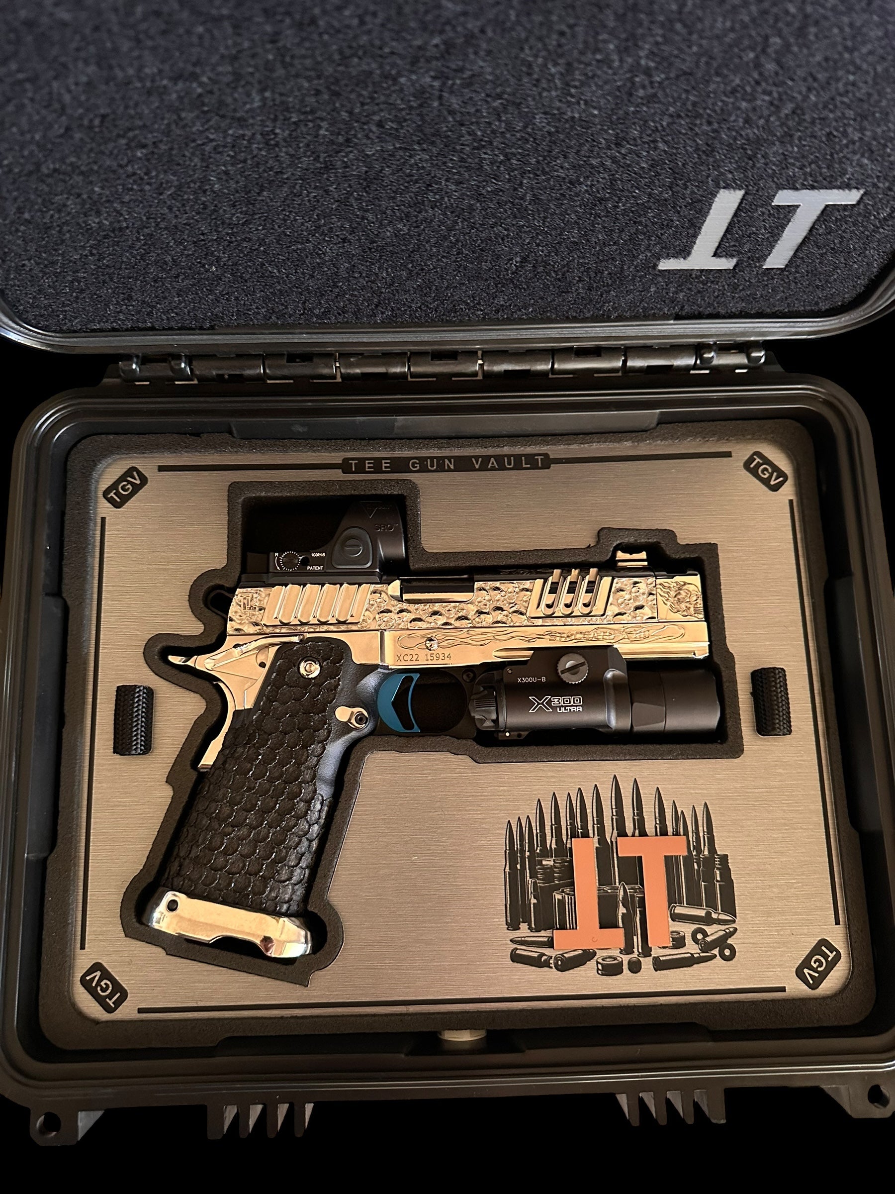 STACCATO CUSTOM XC “VITA FINITA” 1 OF 10 ENGRAVED HIGH POLISHED NICKEL WITH ATLAS TRIGGER SRO AND X300