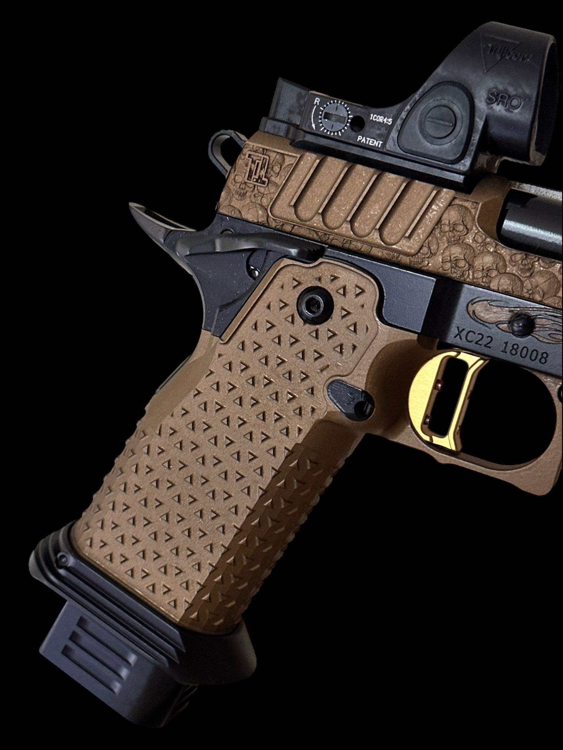 STACCATO CUSTOM XC “VITA FINITA” BLACK/BRONZE WITH ATLAS ALUMINUM GRIPS AND SRO