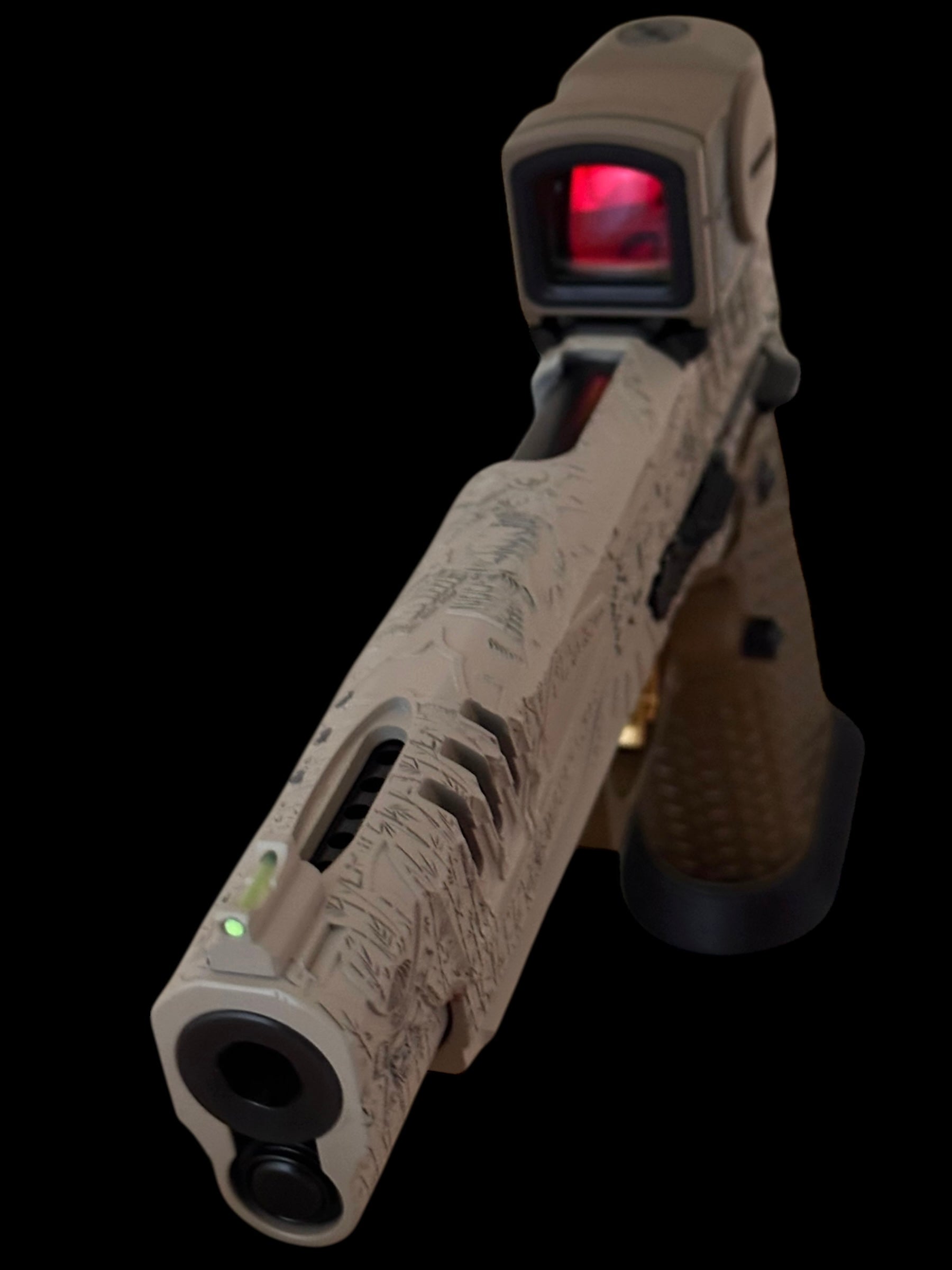 - FULL BRONZE/DESERT TAN CERAKOTE FINISH WITH BLACK DLC BARREL