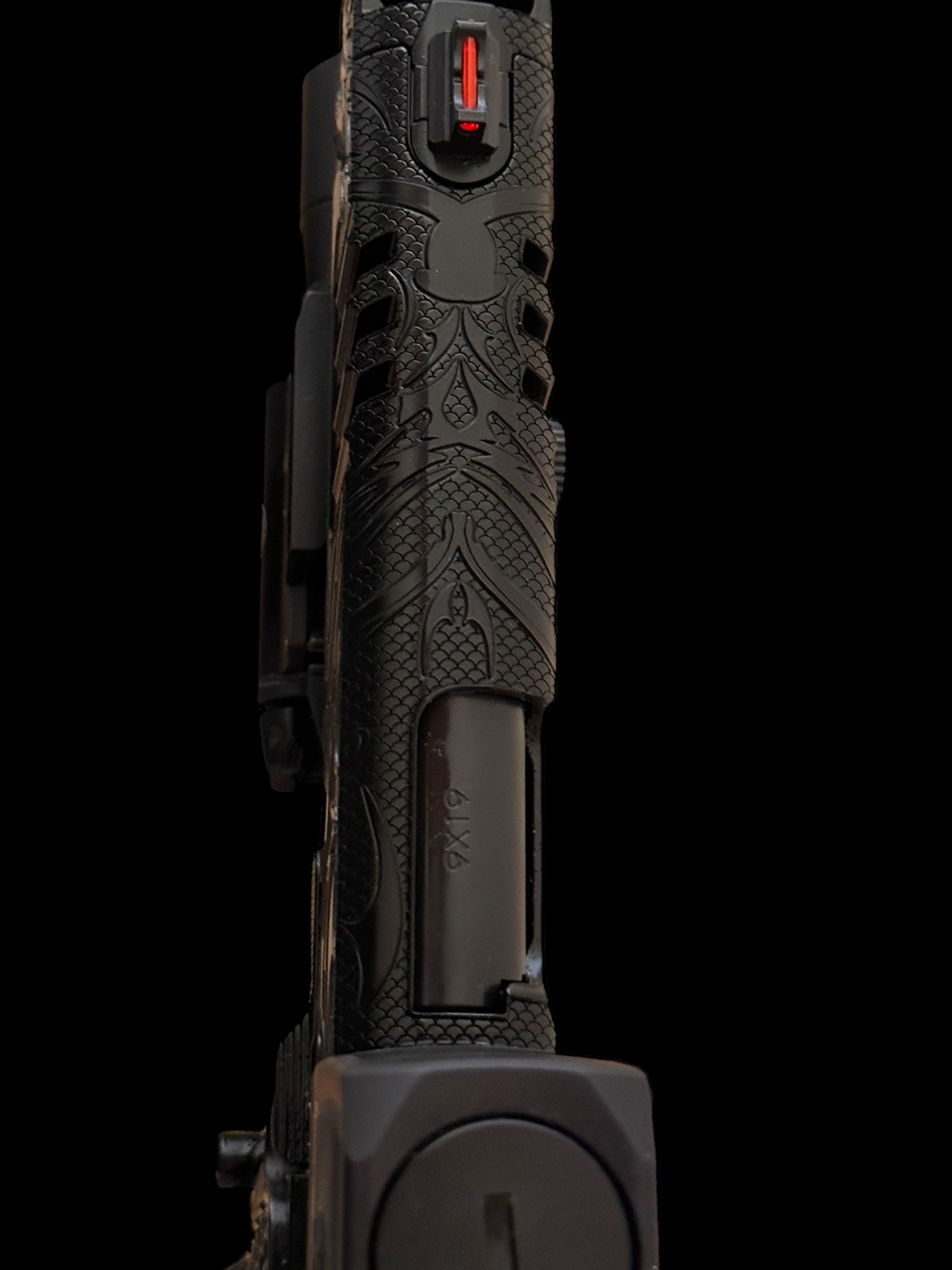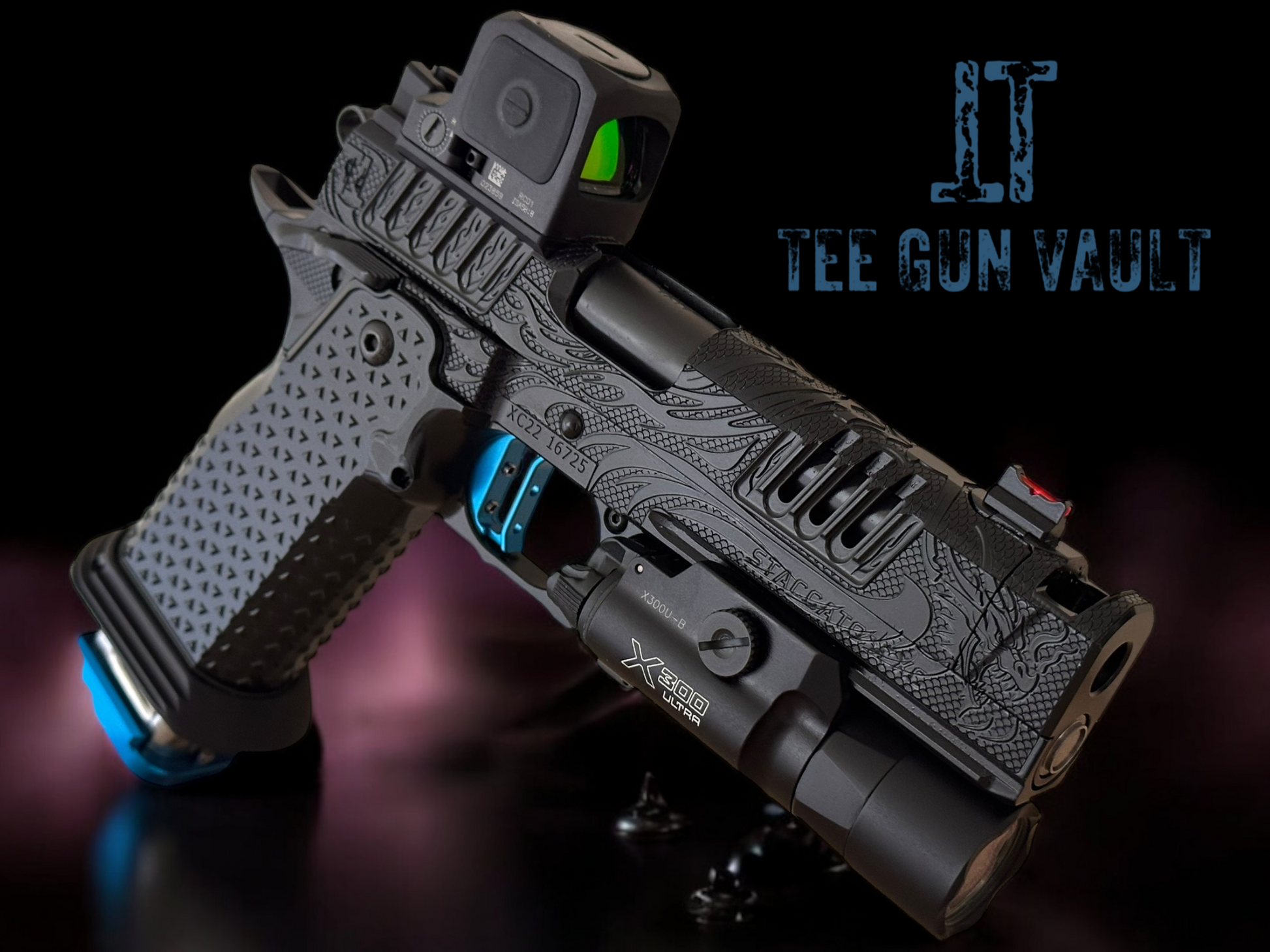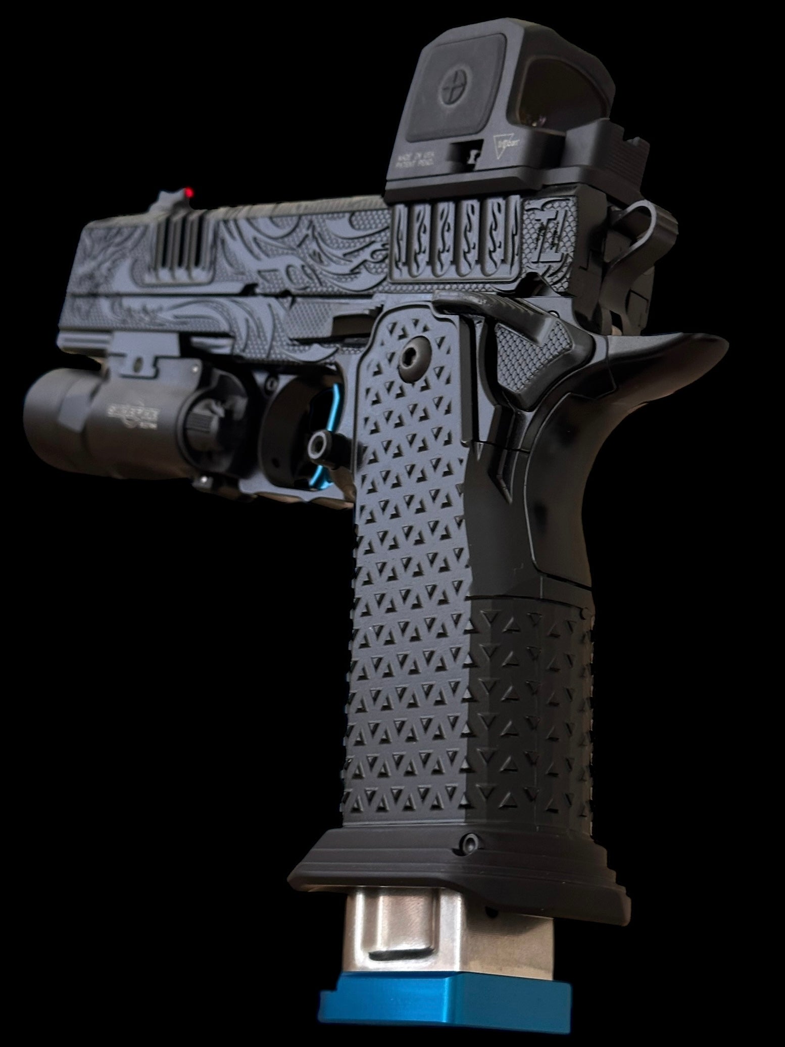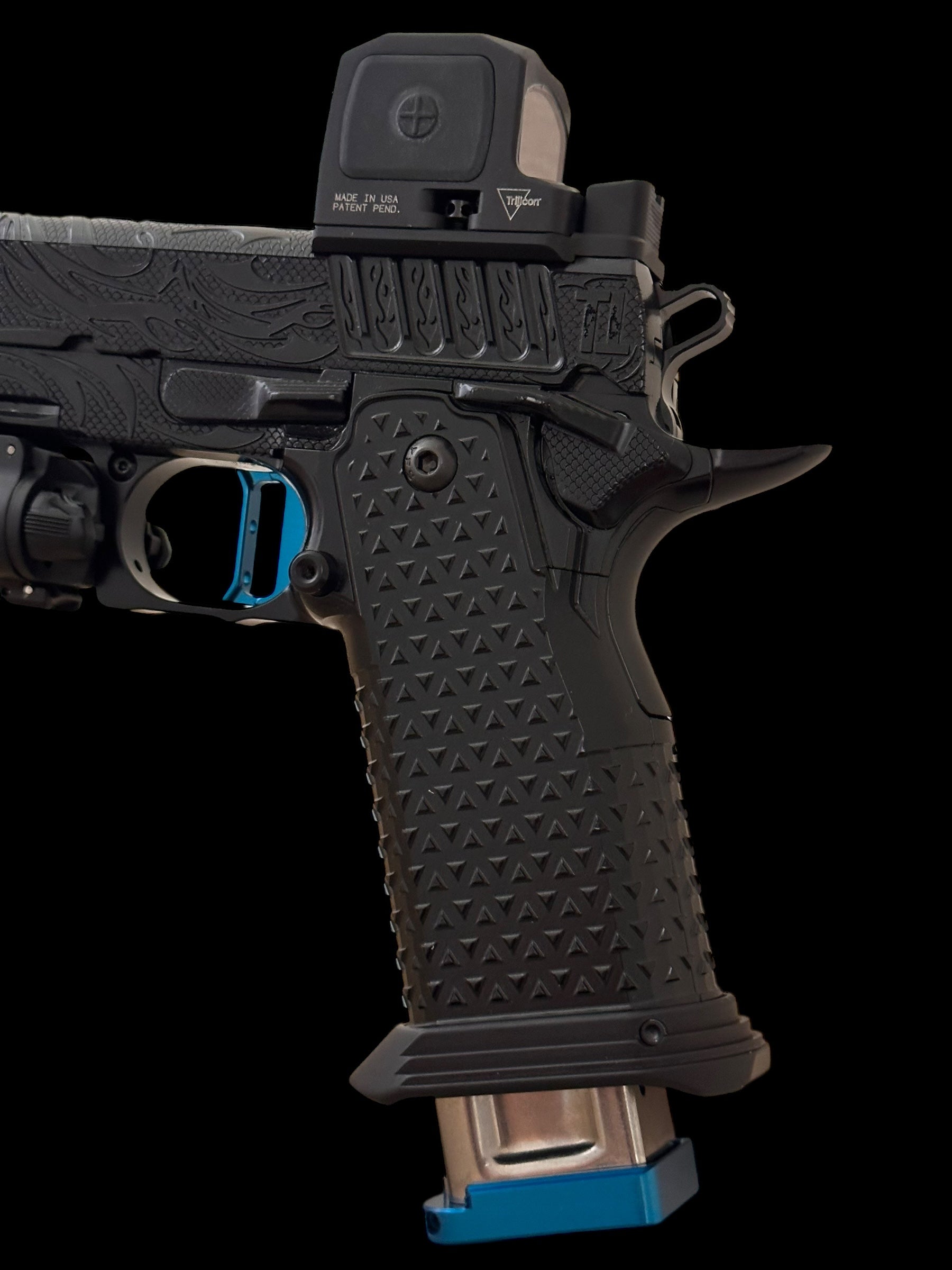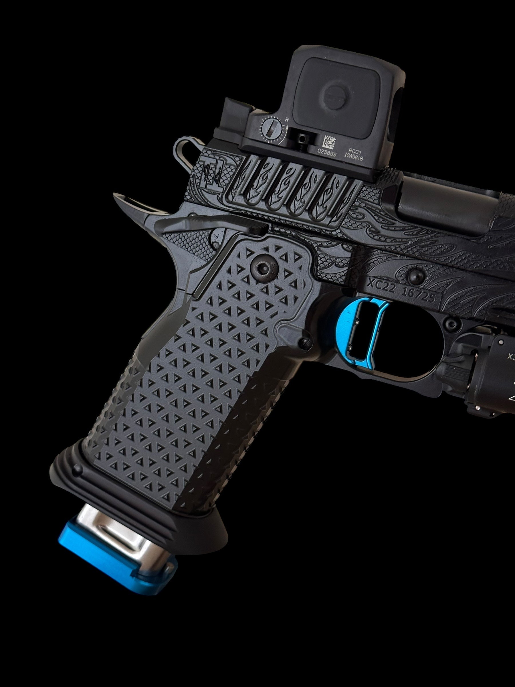 STACCATO XC CUSTOM “TRIBAL DRAGON BLACK” EDITION WITH ATLAS GRIPS / TRIGGER TRIJICON RCR AND X300