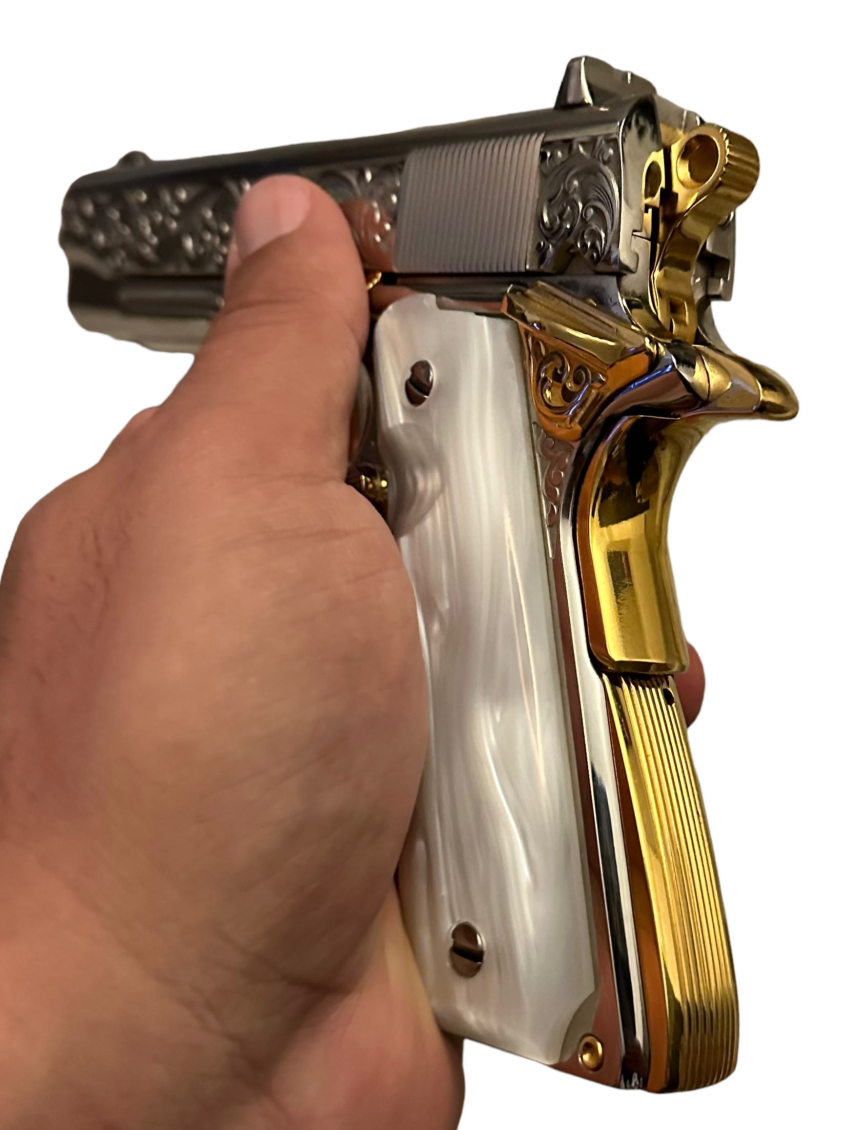 TISAS TANK COMMANDER 1911A1 TC 9 FULLY ENGRAVED, HIGH POLISHED, NICKEL & 24K GOLD PLATED 9MM